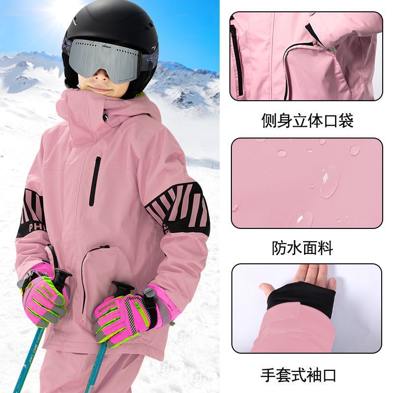 새로운 어린이 스키 세트 세트 소년 소녀 두꺼운 따뜻한 방풍 및 방수 스키 세트