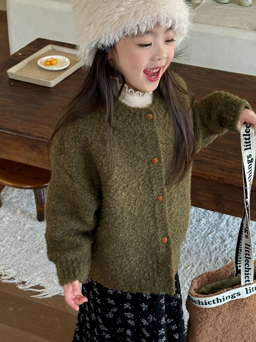 유유 공주 여아 한국 스타일 레트로 해초 녹색 니트 가디건 스웨터 여아용 원형 니트 스웨터 코트스토어 가기