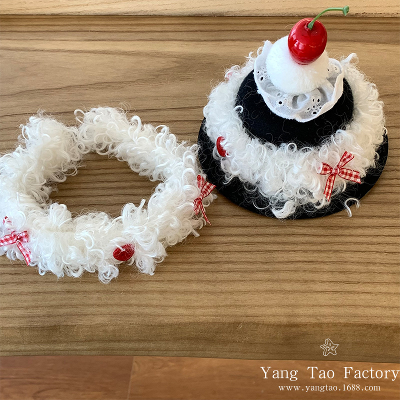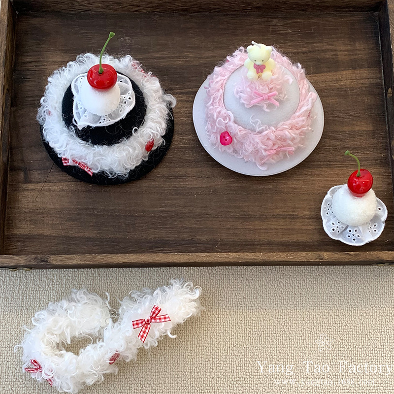 尺寸:小熊帽子高约12cm,樱桃帽子高约14cm,帽底直径约13cm