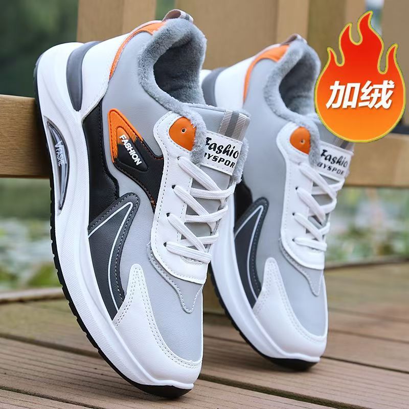 겨울 남성 신발 새로운 도착 기모 가죽 캐주얼 운동화 방수 따뜻한 미끄럼 방지 소프트 하단 러닝 슈즈 남성용스토어 가기