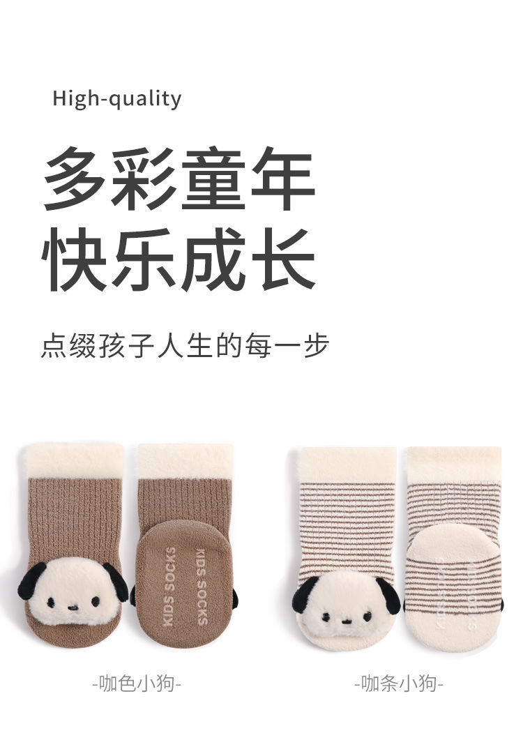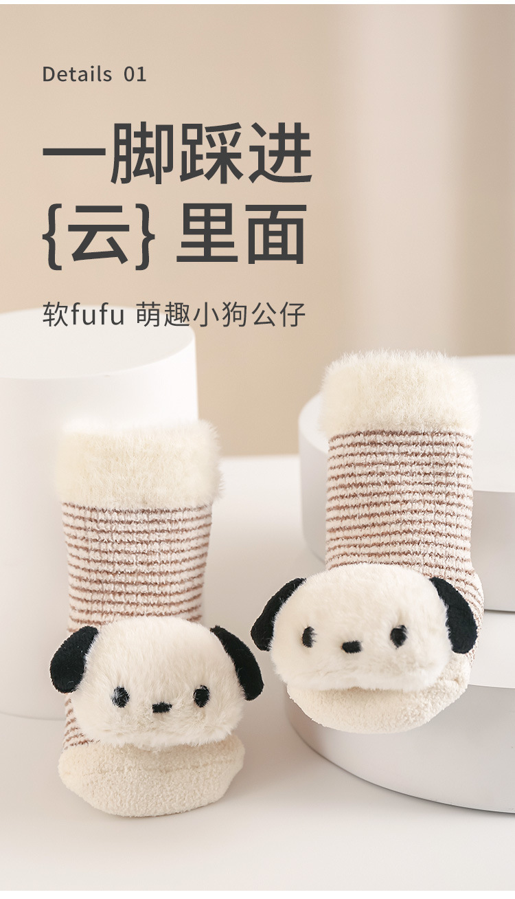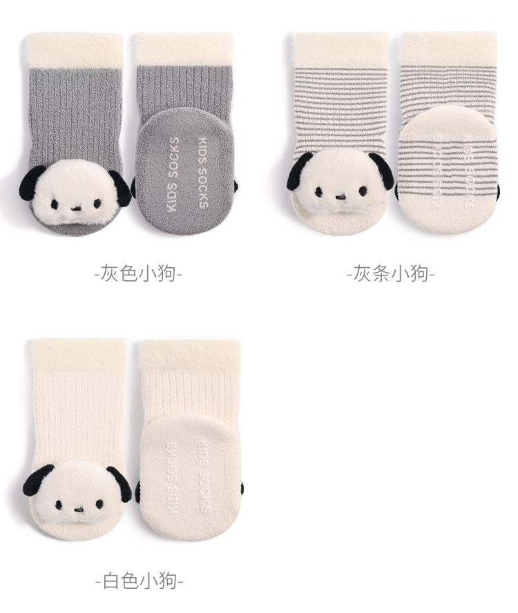 신생아 아기 바닥 양말 가을과 겨울 기모 두꺼운 만화 강아지 유아 양말 아기 실내 미끄럼 방지 유아 양말스토어 가기