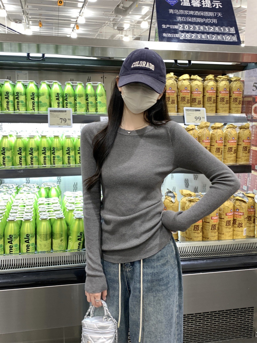 가을과 겨울 독일 벨벳 따뜻한 인테리어 슬림 부드러운 밀랍 긴 소매 티셔츠 여성베이스 셔츠스토어 가기