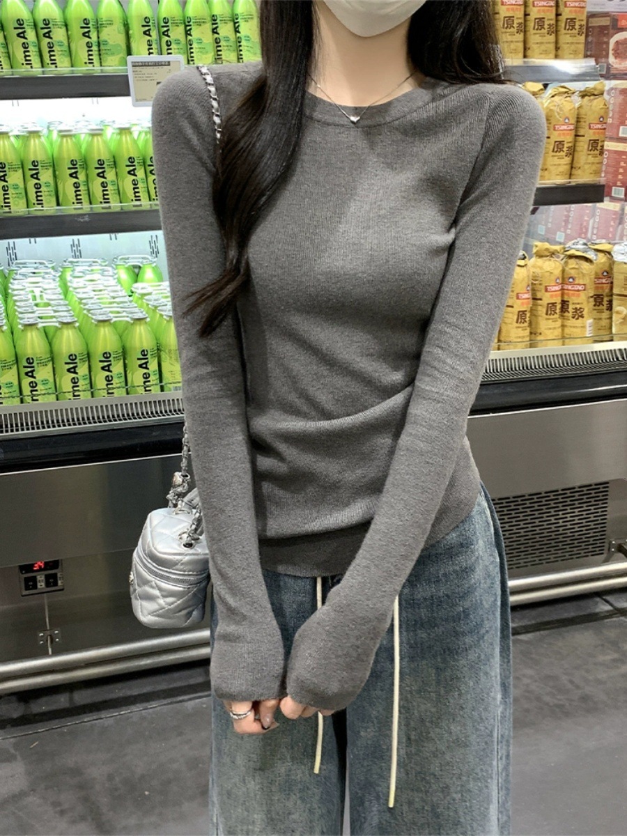 가을과 겨울 독일 벨벳 따뜻한 인테리어 슬림 부드러운 밀랍 긴 소매 티셔츠 여성베이스 셔츠