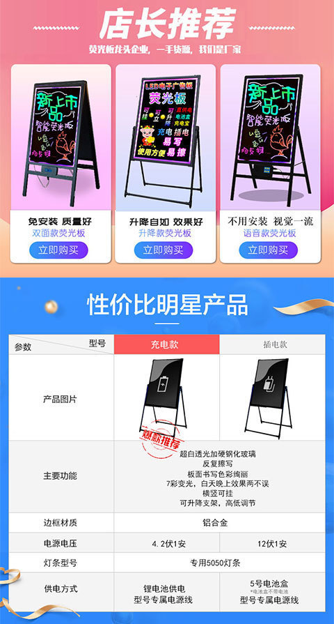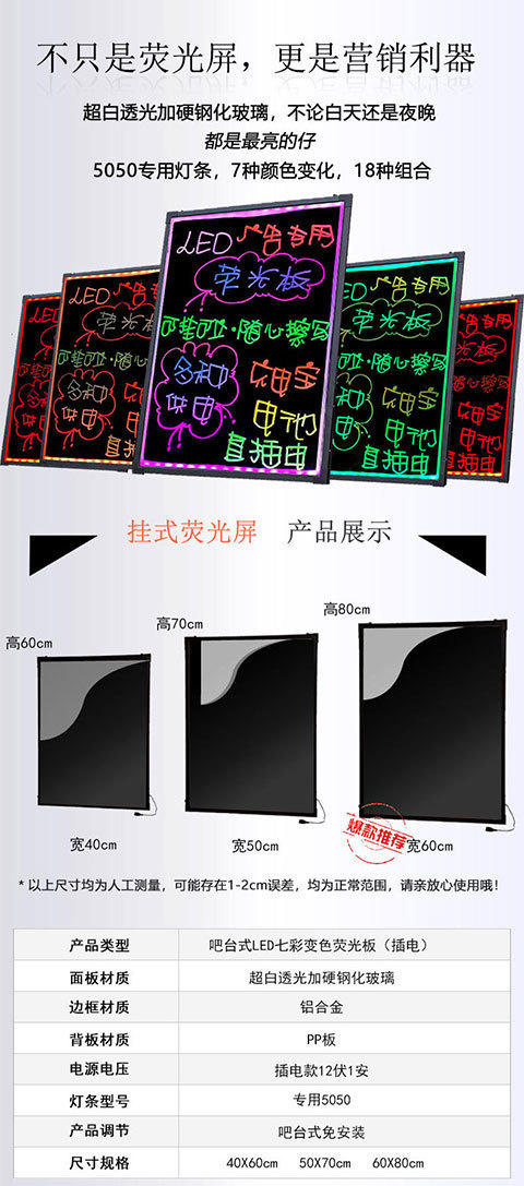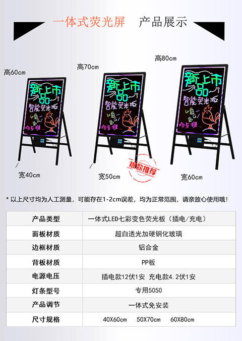 형광 보드 광고판 LED 매장 야시장 매점 광고판 발광 광고판 매장 디스플레이 칠판 통관