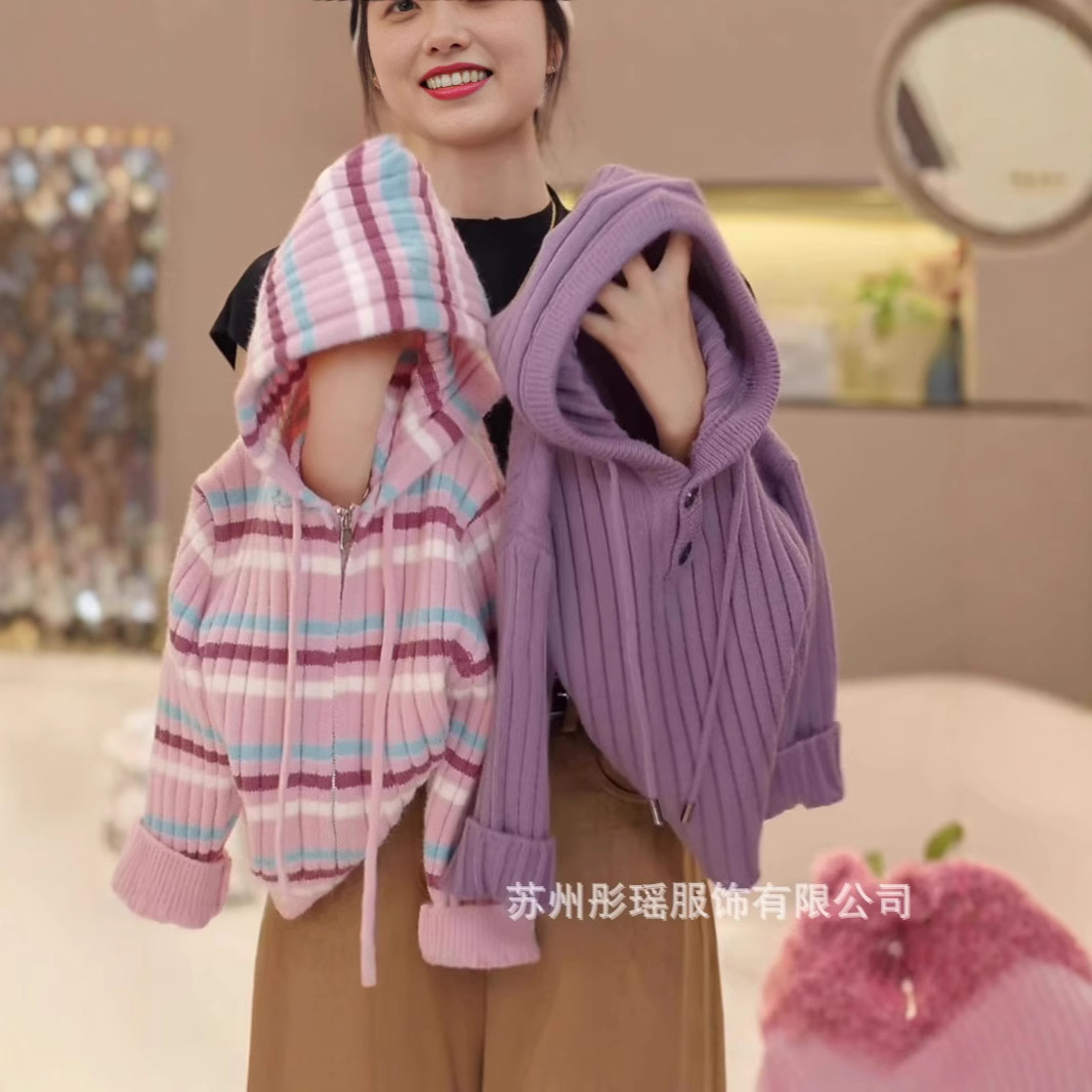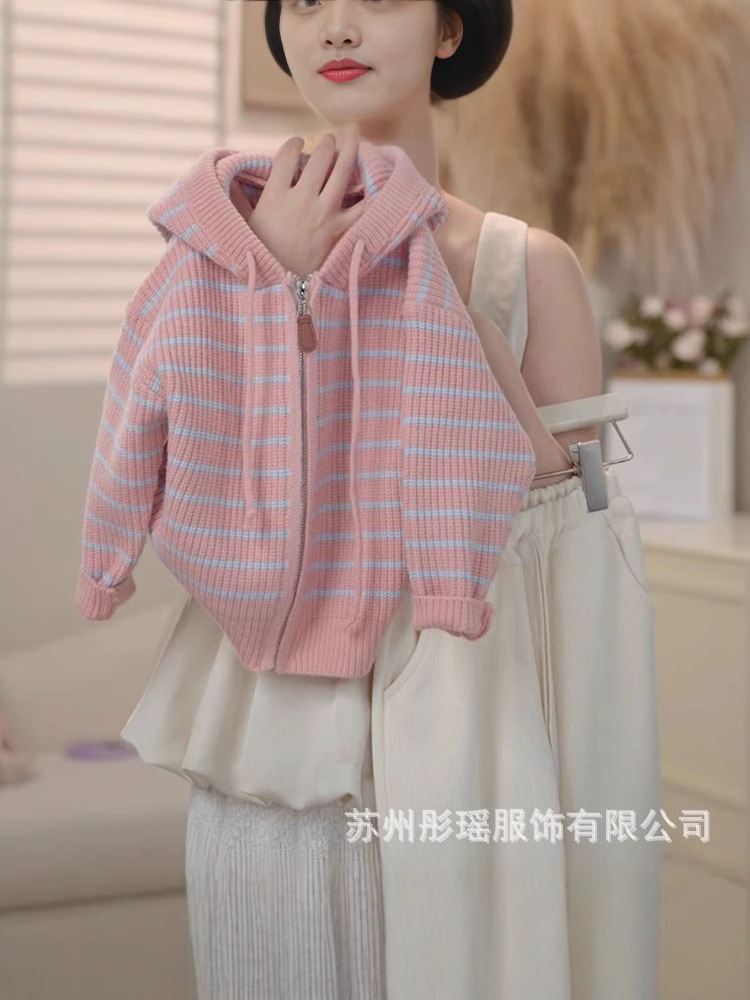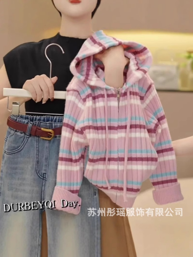 여자 후드 스웨터 2022 봄, 가을 어린이 스웨터 겉옷 풀오버 스트라이프 여자 탑 재킷 한국어 버전스토어 가기