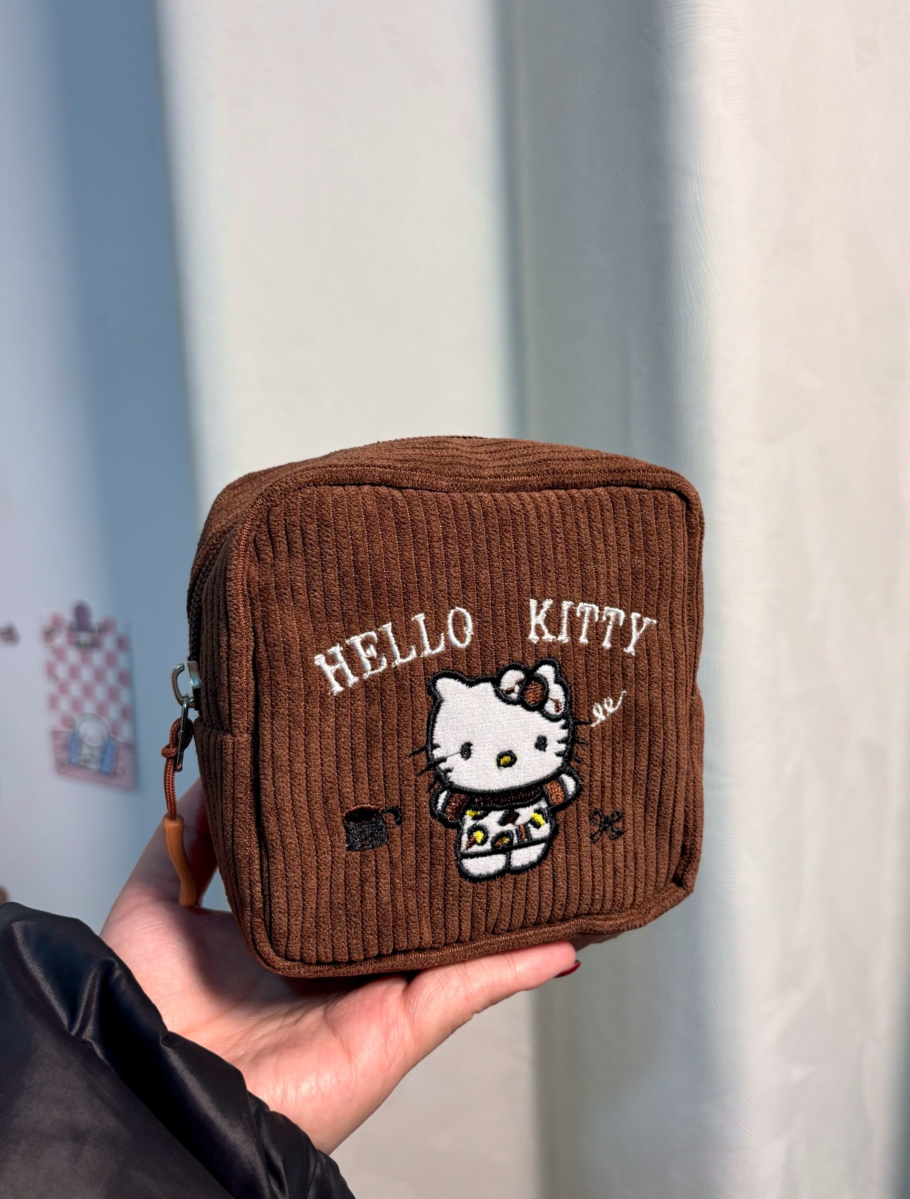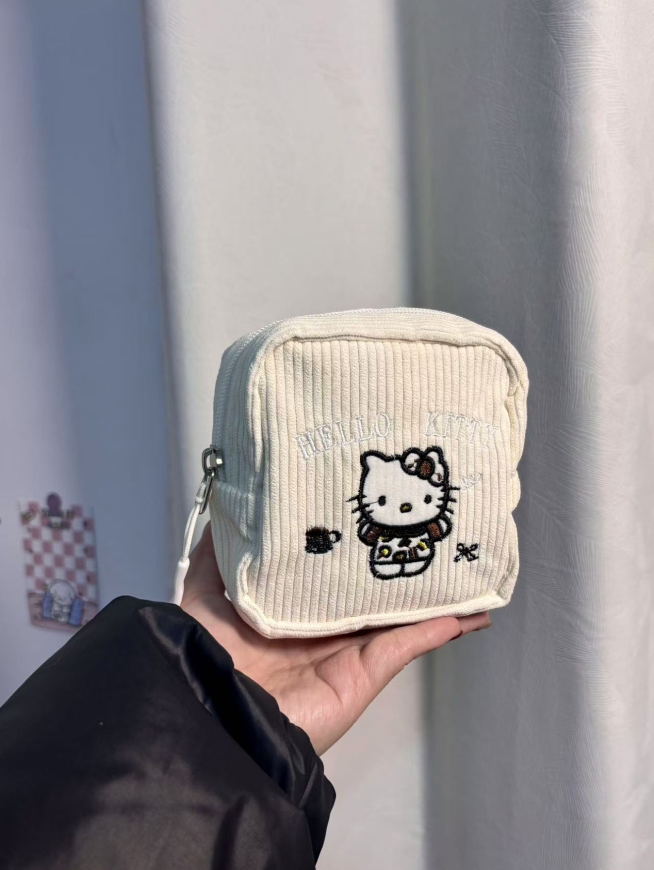 2024 가을과 겨울 코듀로이 천 헬로 키티 자수 화장품 가방 높은 색상 가치 휴대용 손 씻기 가방스토어 가기