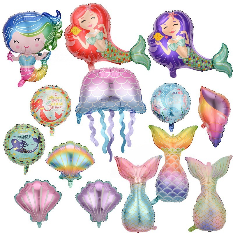 인어 풍선 외계인 만화 풍선 물고기 꼬리 껍질 모양 알루미늄 필름 바다 요정 생일 파티 장식