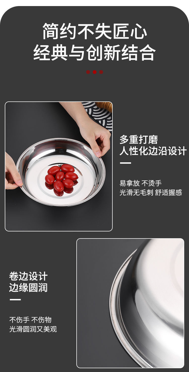 스테인리스 접시, 가정용 접시, 만두 접시, 상업용 바베큐 접시, 트레이, 식사 접시, 도매, 두꺼운, 심플한 디자인스토어 가기