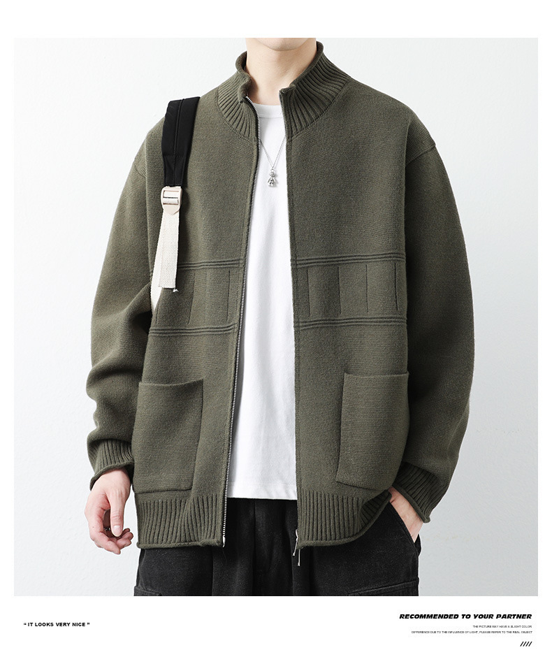 수직 칼라 니트 카디건 재킷 남자의 봄과 가을 패션 브랜드 느슨한 캐주얼 재킷 남자의 잘 생긴 스웨터 재킷스토어 가기