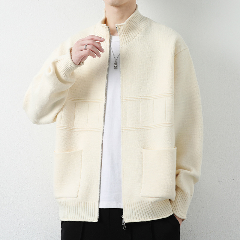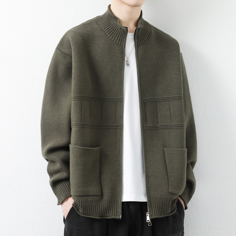 수직 칼라 니트 카디건 재킷 남자의 봄과 가을 패션 브랜드 느슨한 캐주얼 재킷 남자의 잘 생긴 스웨터 재킷