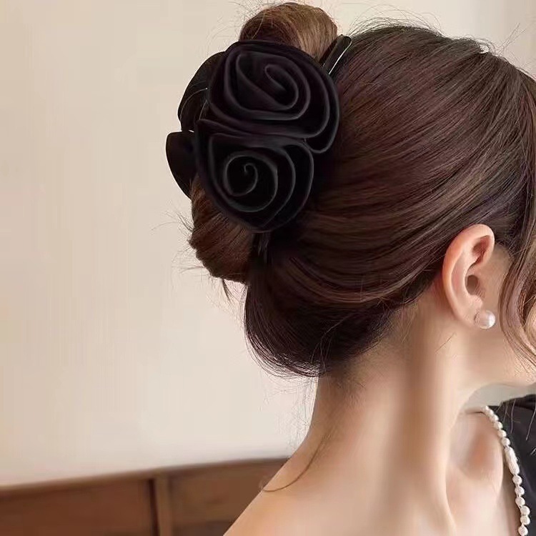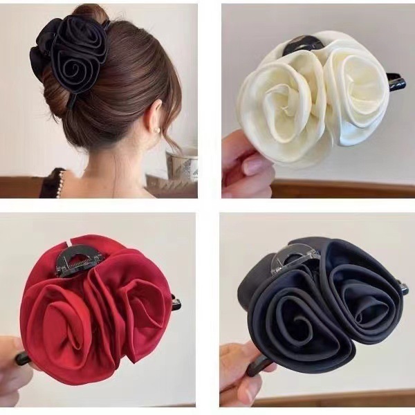무광택 새틴 장미꽃 머리핀, 고급스럽고 우아한 여성용 큰 사이즈 샤크클립, 패셔너블한 헤어 액세서리스토어 가기