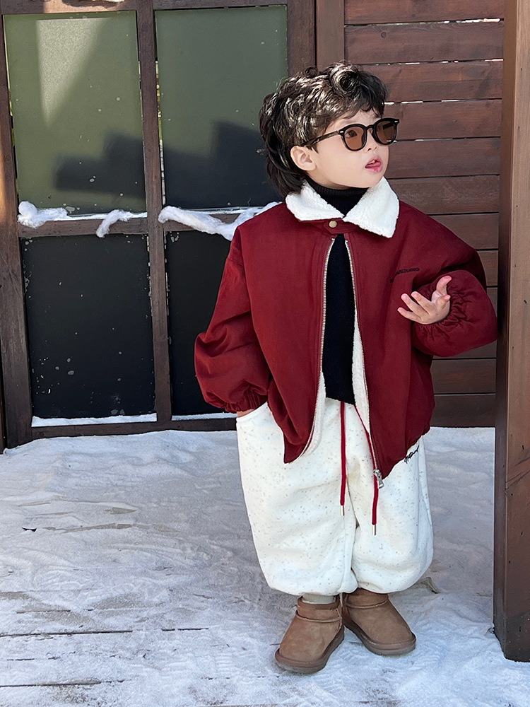 어린이 레드 기모 재킷 한국 스타일 어린이 의류 아기 신년 코트 서양식 유행 유행 두꺼운 재킷