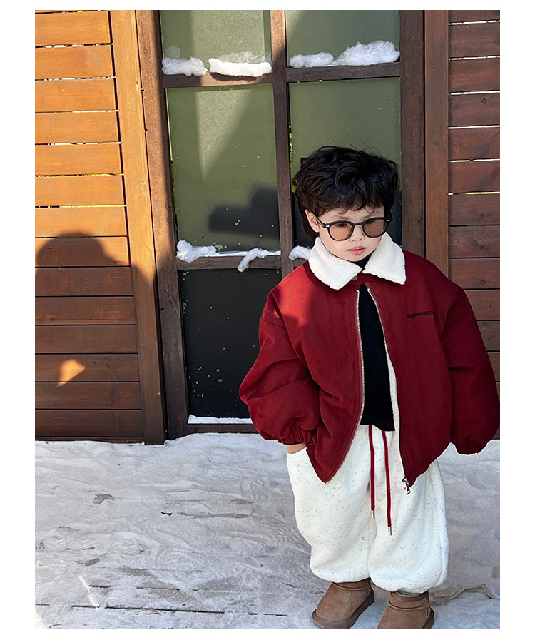 어린이 레드 기모 재킷 한국 스타일 어린이 의류 아기 신년 코트 서양식 유행 유행 두꺼운 재킷스토어 가기