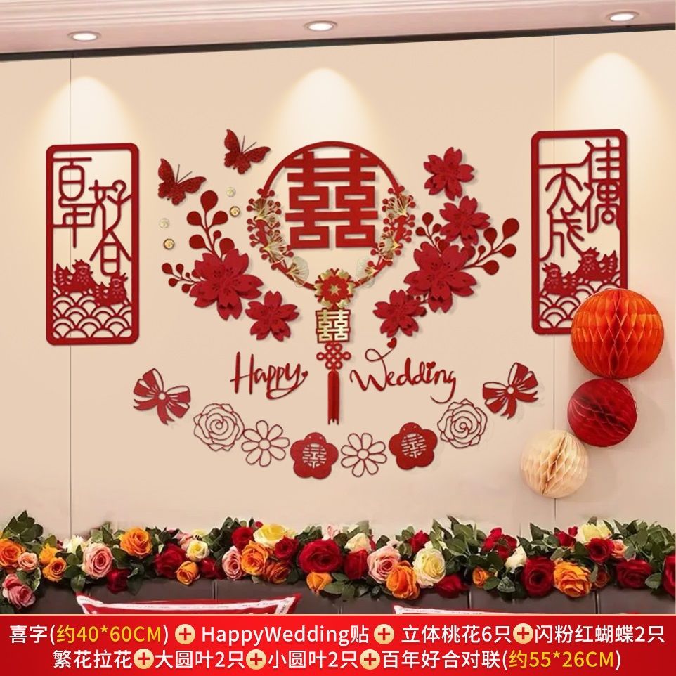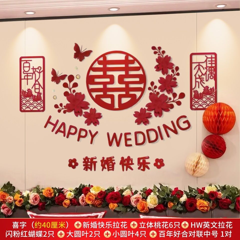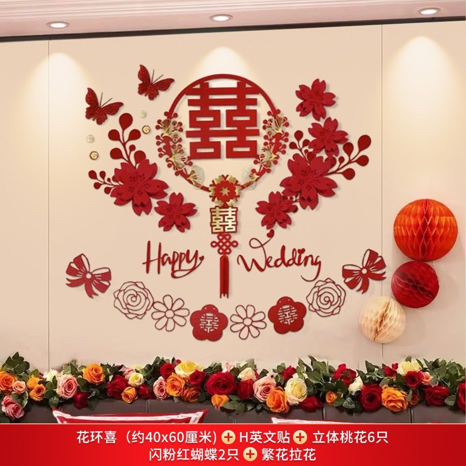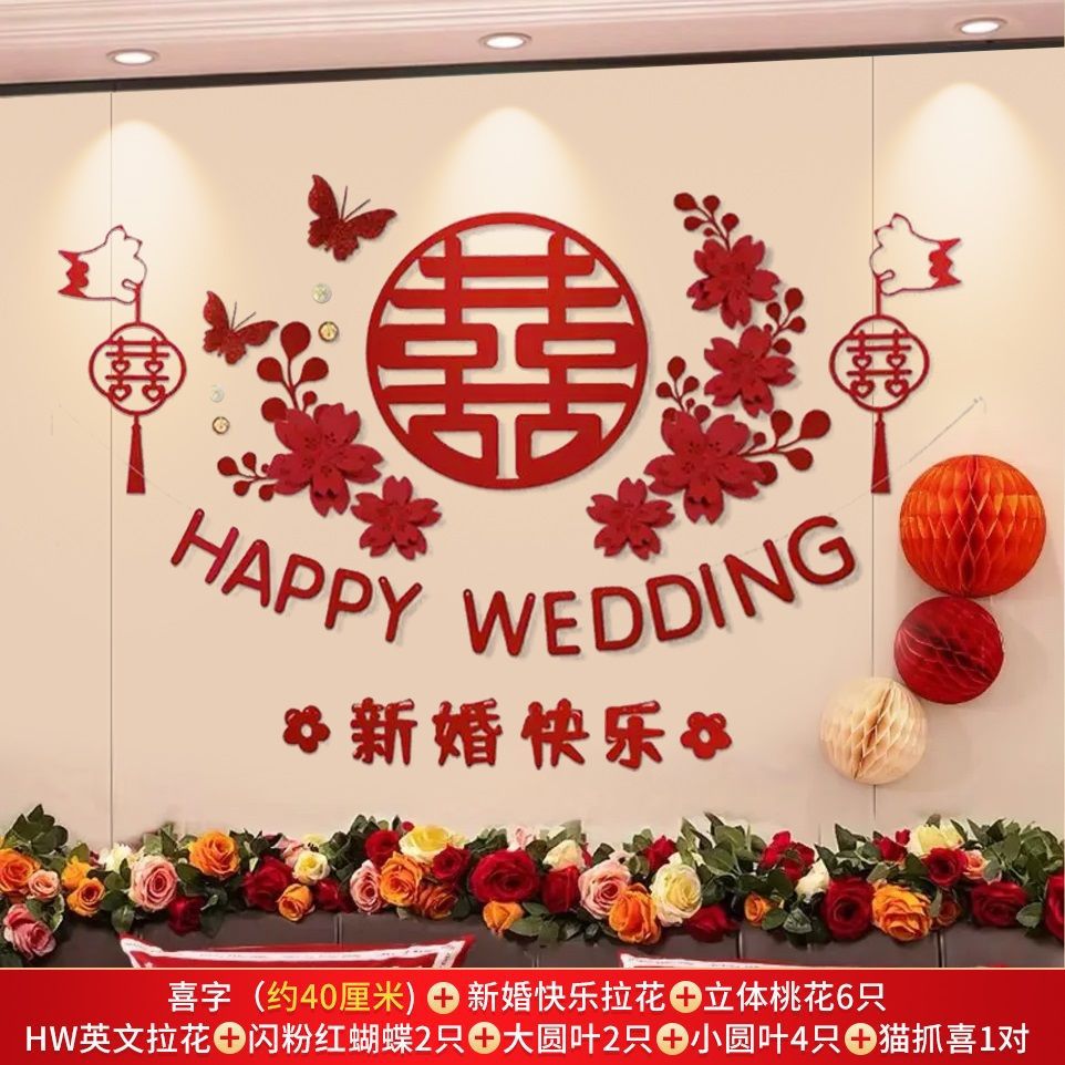 웨딩 룸 레이아웃 세트 초대형 해피 캐릭터 웨딩 레이아웃 장식 남자와 여자 침실 웨딩 특별 장식 배경