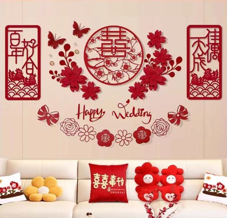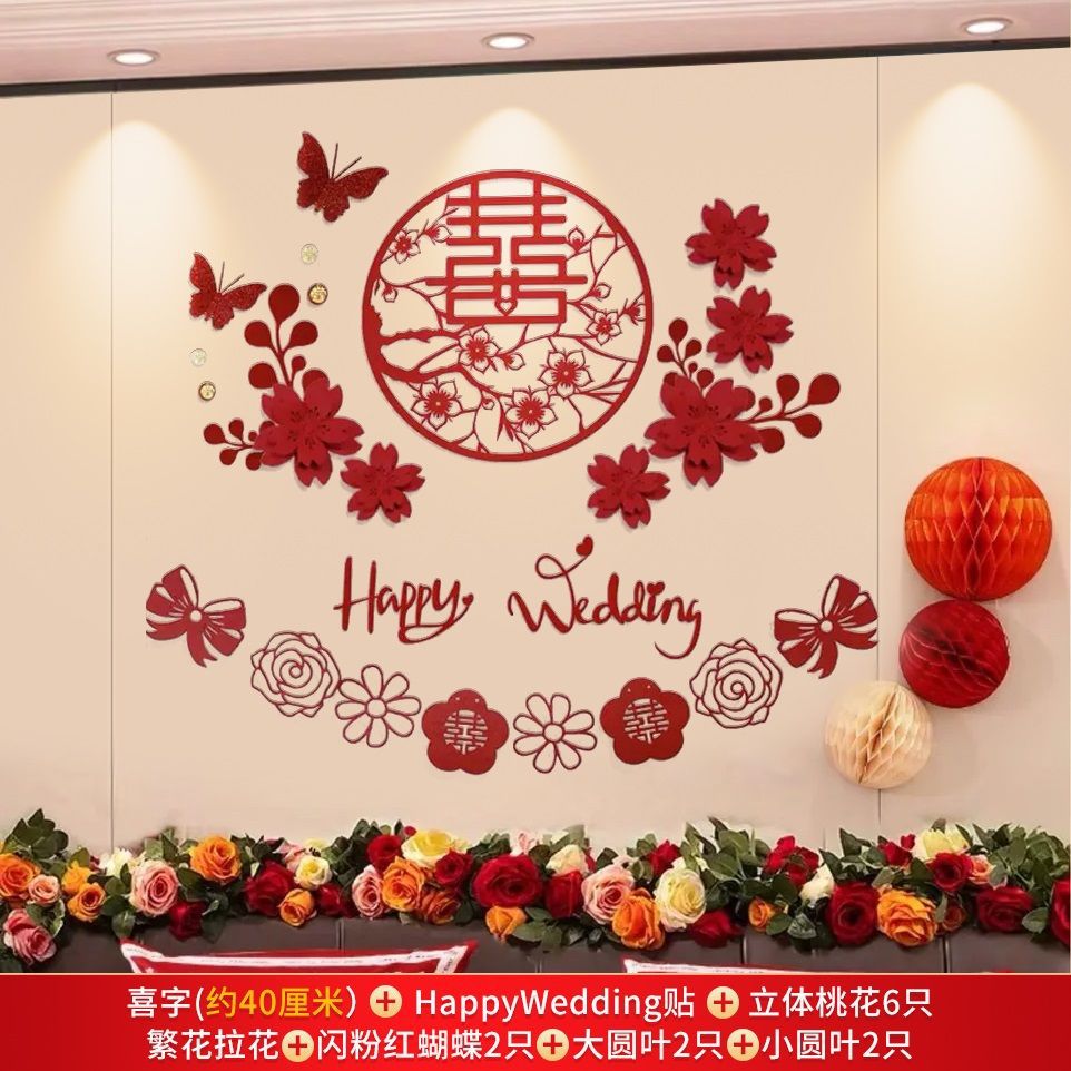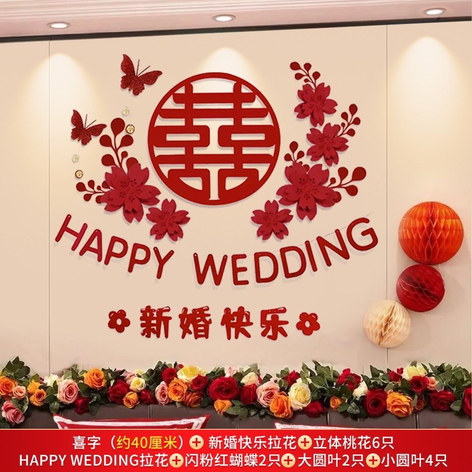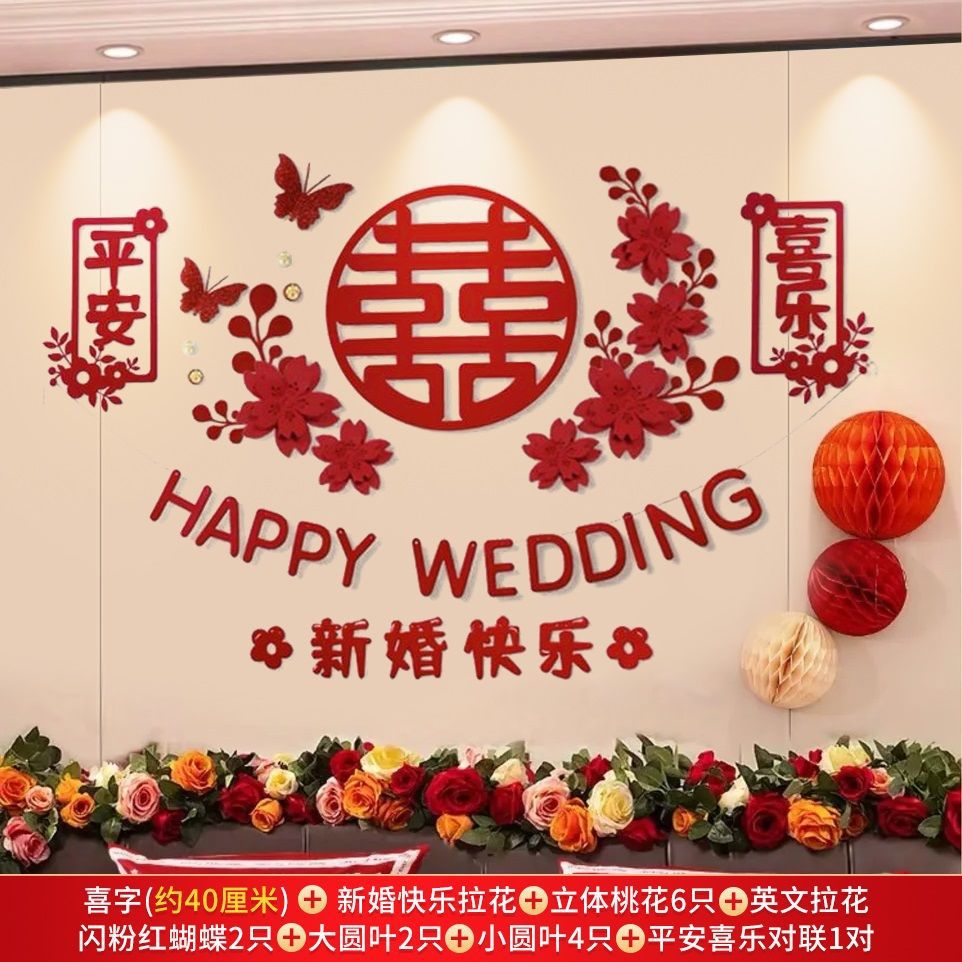 웨딩 룸 레이아웃 세트 초대형 해피 캐릭터 웨딩 레이아웃 장식 남자와 여자 침실 웨딩 특별 장식 배경