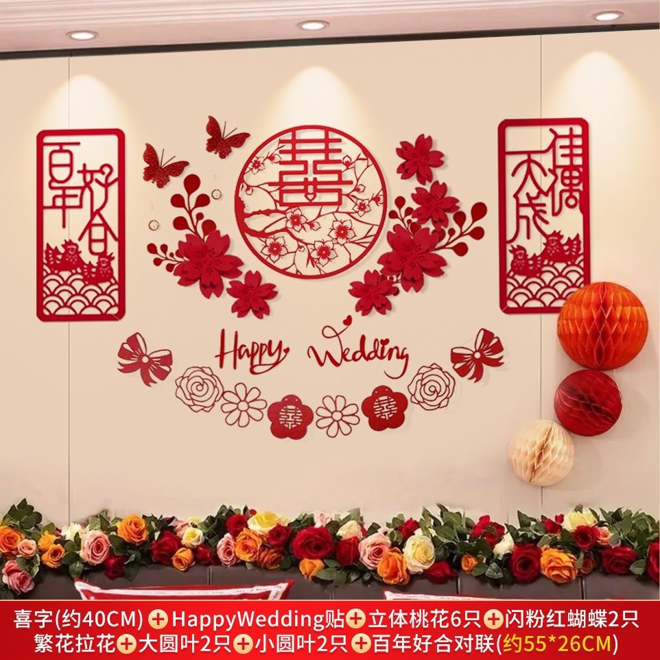 웨딩 룸 레이아웃 세트 초대형 해피 캐릭터 웨딩 레이아웃 장식 남자와 여자 침실 웨딩 특별 장식 배경스토어 가기