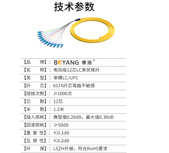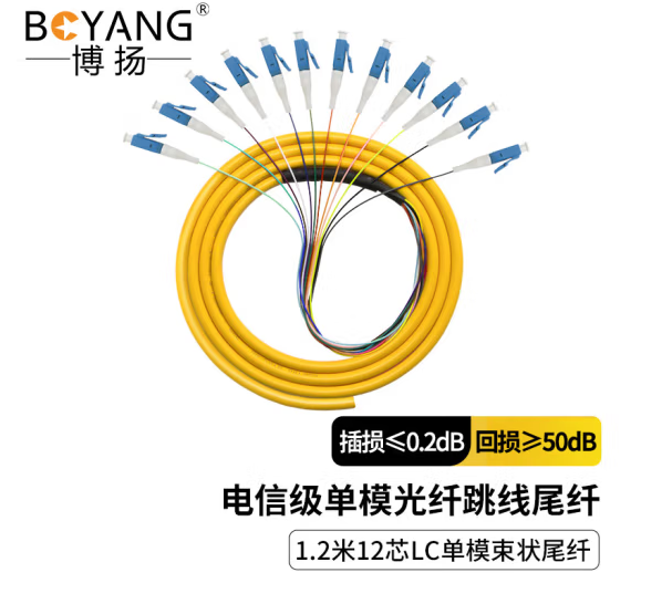 博扬(BOYANG)BY-LC12 电信级单模光纤跳线尾纤 1.2米12芯LC束状尾纤 ODF单元体光纤机架网线配线*1*合格证*1保修卡*1