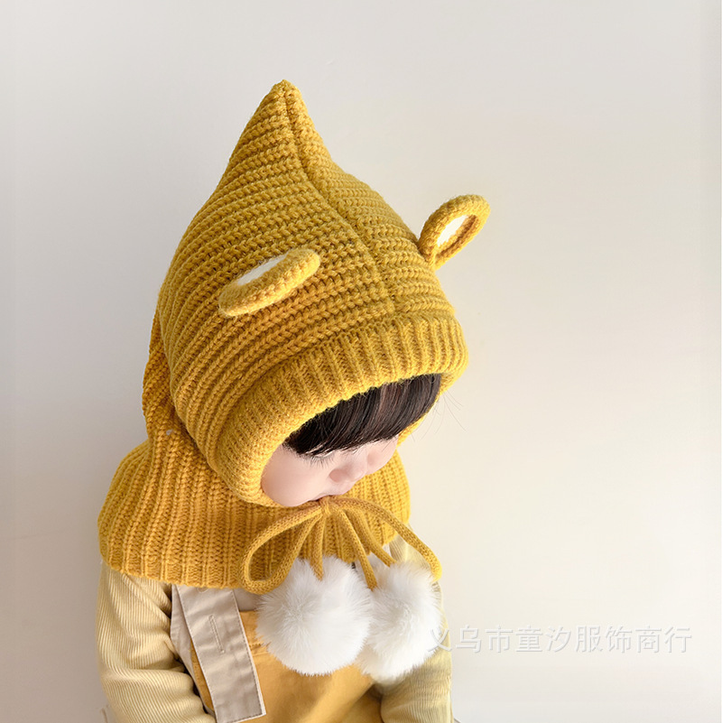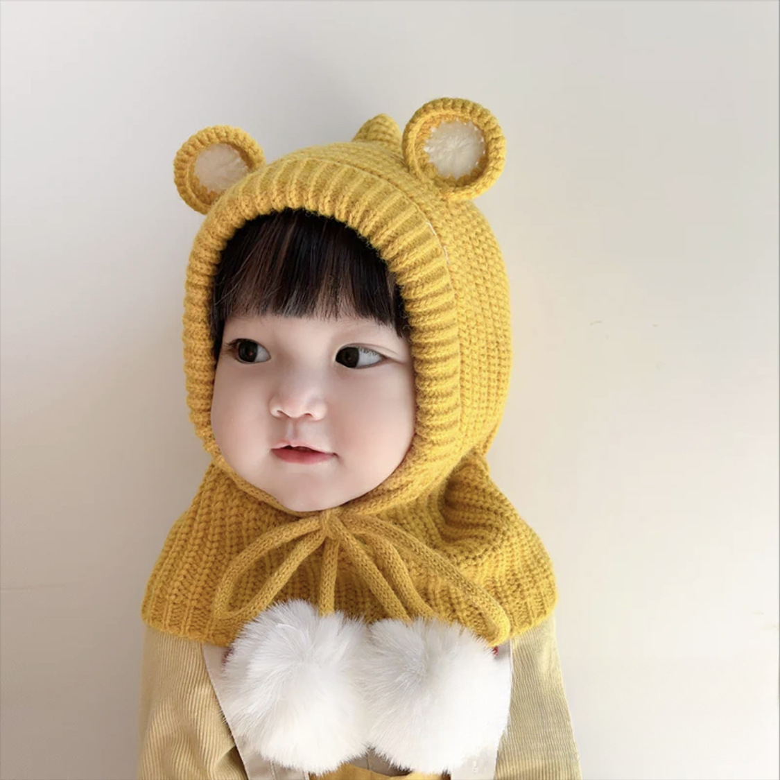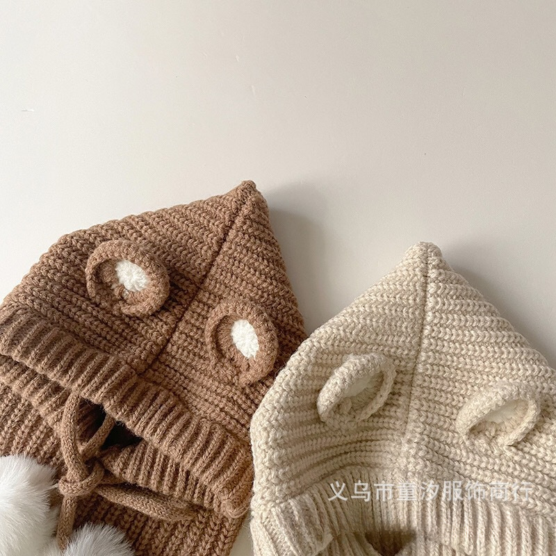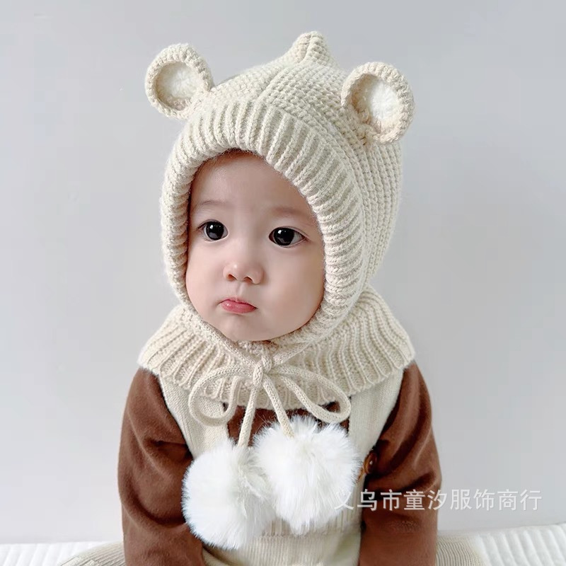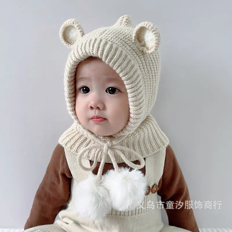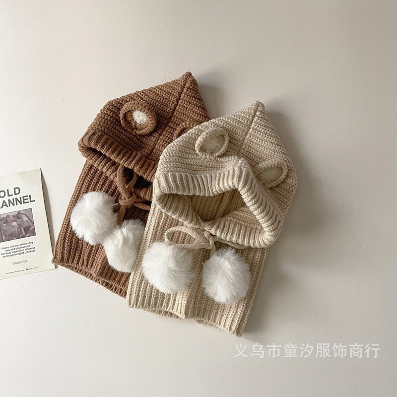 목도리 겨울 스카프 헤어 볼 올인원 아기 귀여운 모자 아기 곰 캡 스트랩 따뜻한 어린이 모자