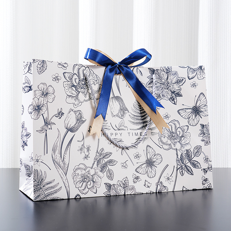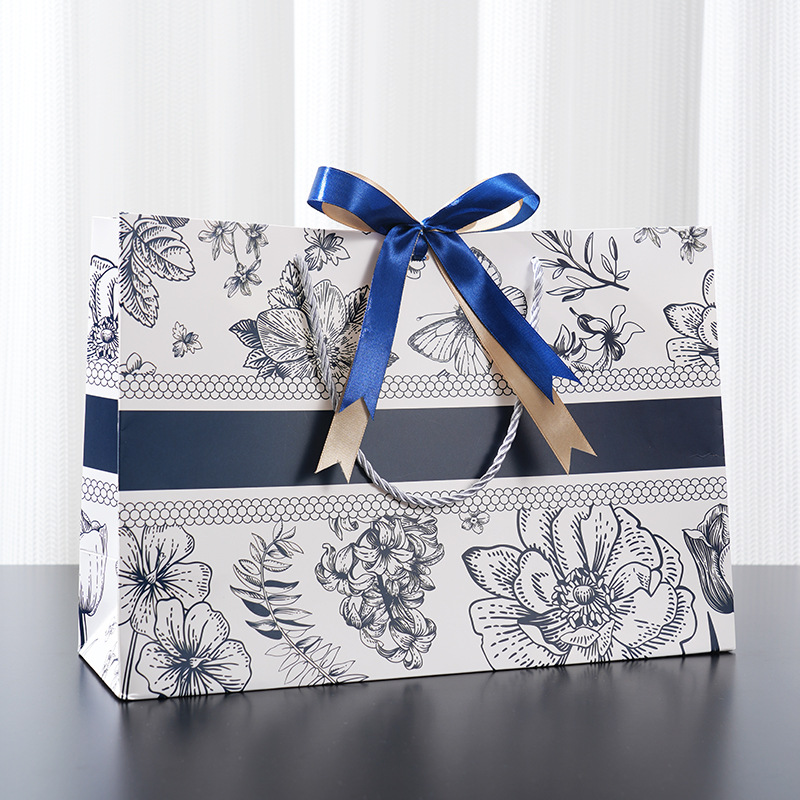 블루 활 선물 가방 하이 엔드 생일 선물 가방 빈티지 꽃 종이 가방 국경 핸드백스토어 가기