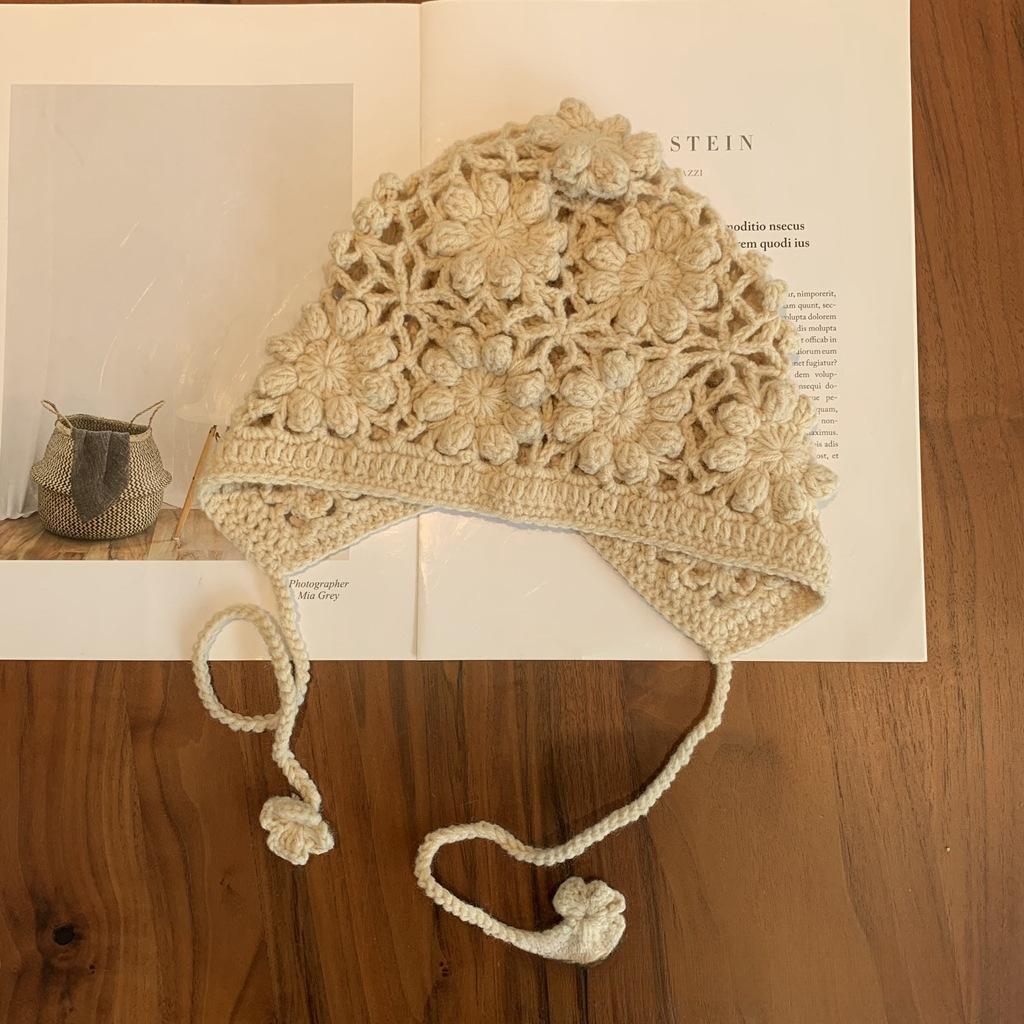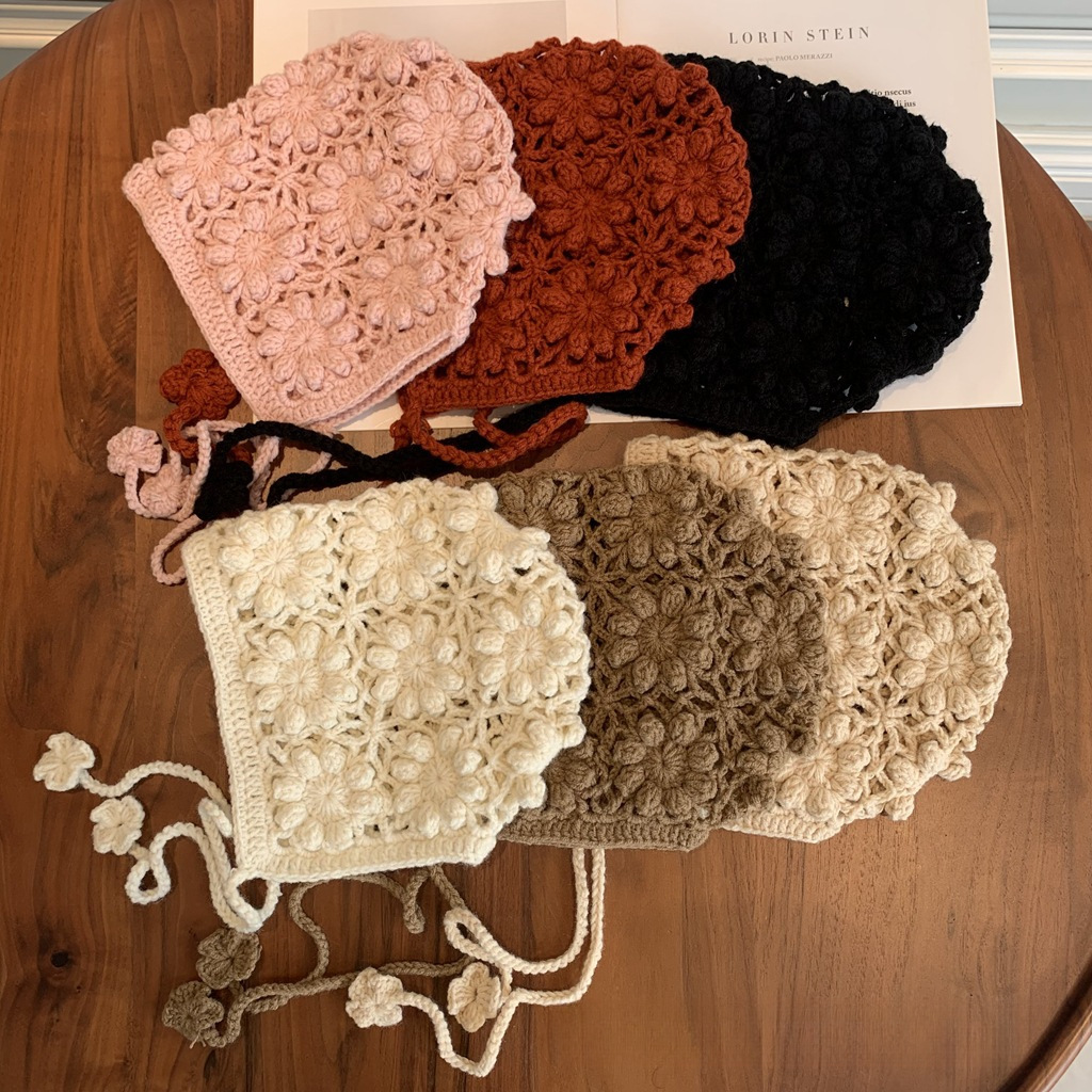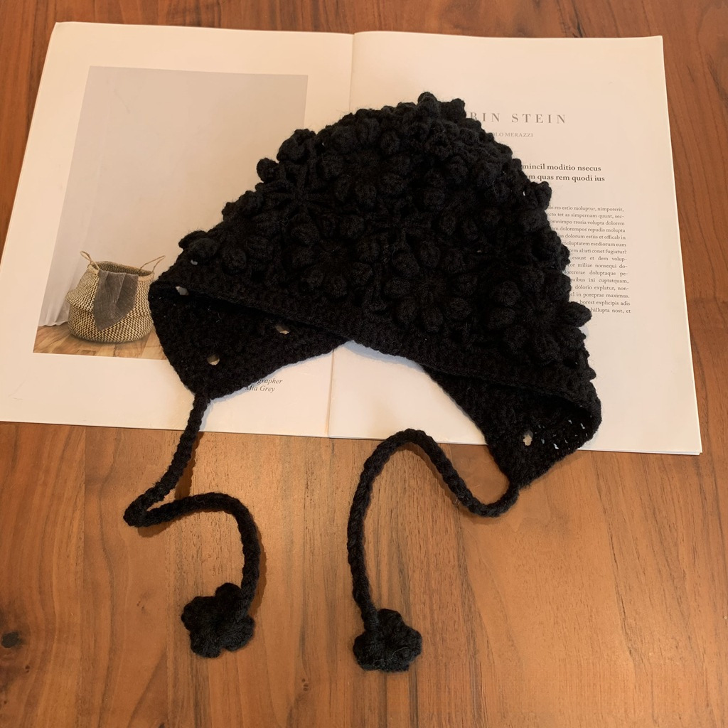 손으로 짠 귀 보호 소녀 한국 모자 어린이 양모 모자 가을과 겨울 소녀의 고품질 양성자 단색 궁전 모자스토어 가기