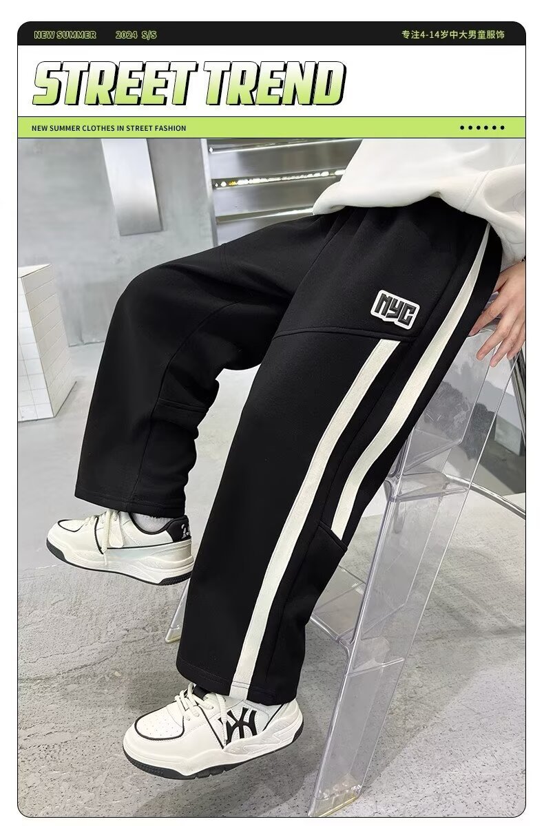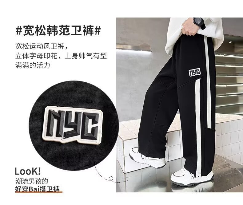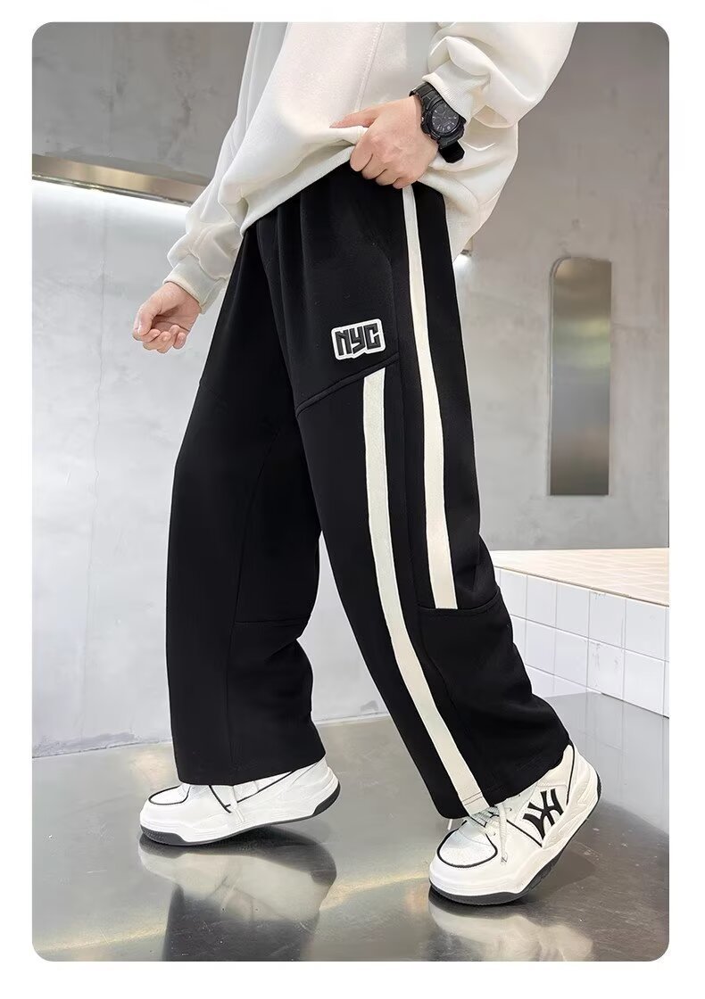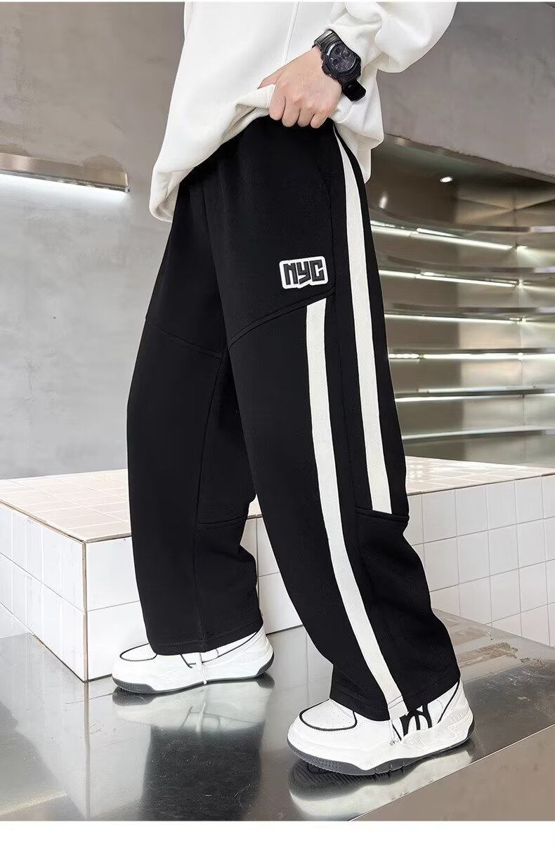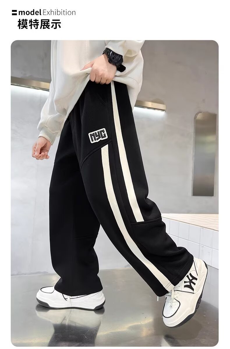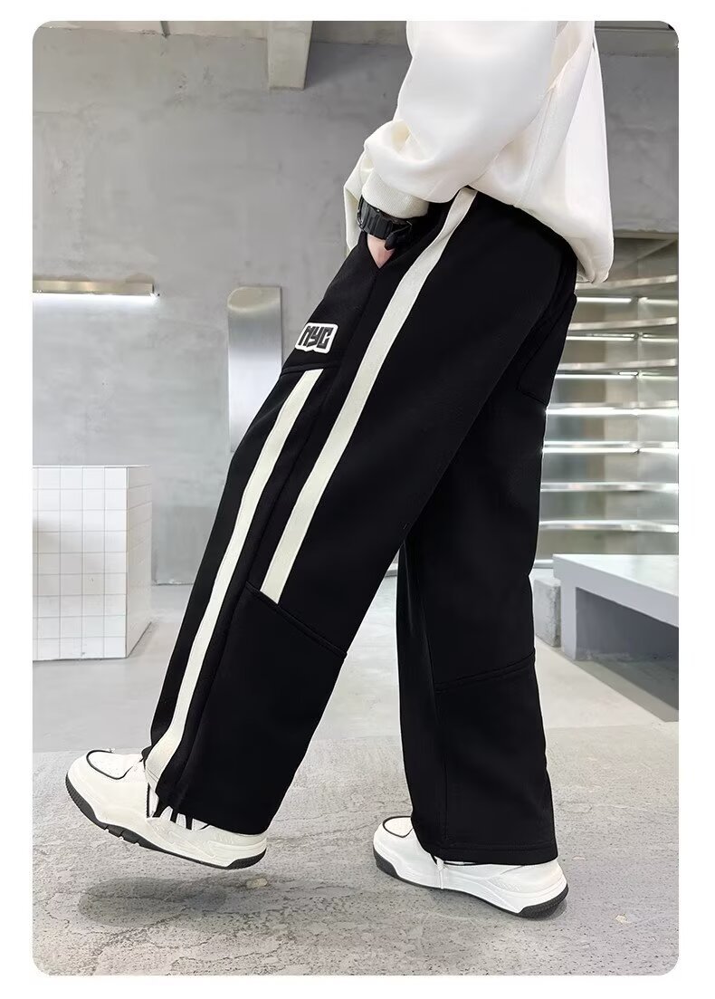 소년의 가을과 겨울 새로운 두꺼운 기모 느슨한 스포츠 바지 2024 어린이 빅 보이 운동복 루즈스토어 가기