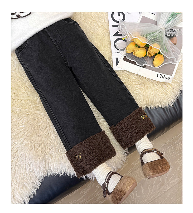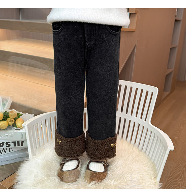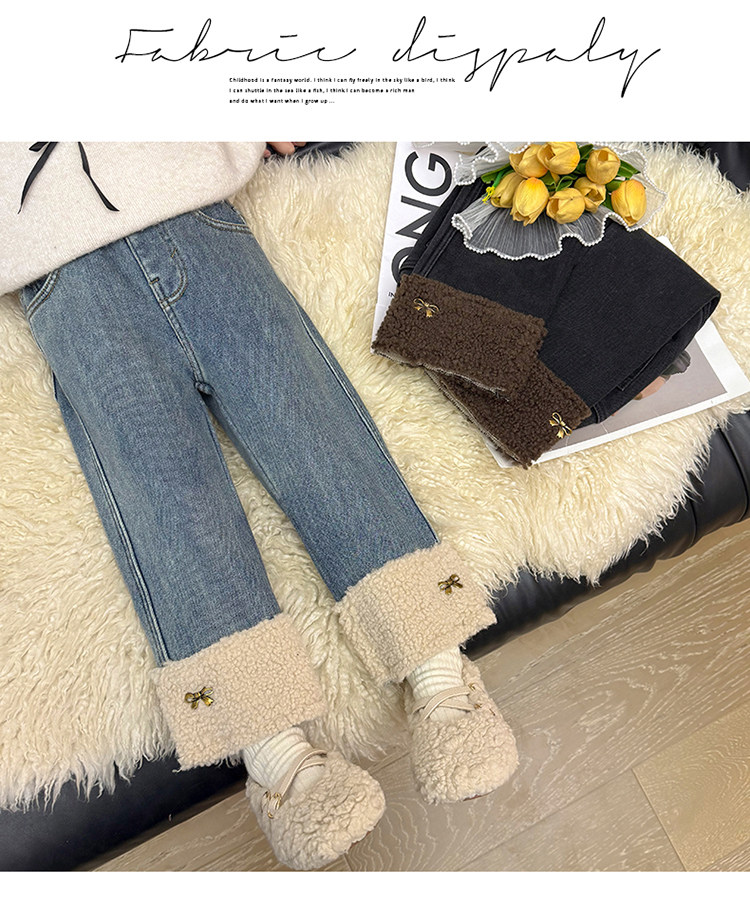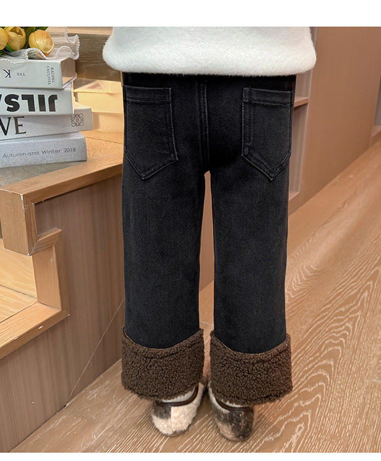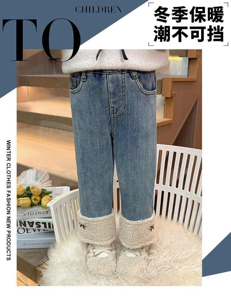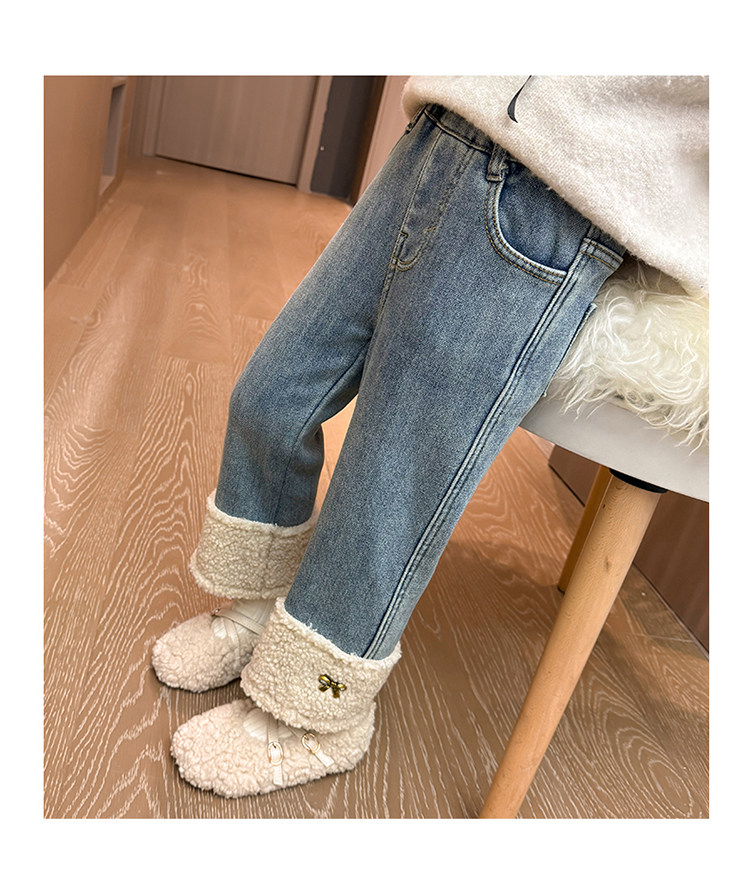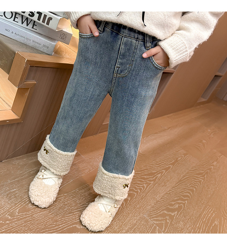 아동복 어린이 바지 소녀 기모 청바지 가을 및 겨울 어린이 바지 서양식 스트레이트 다리 바지 아기의 겨울 캐주얼 바지