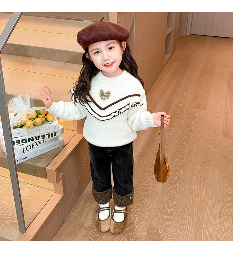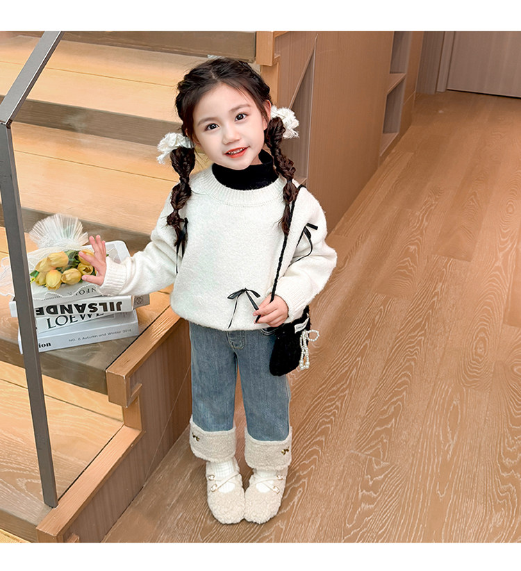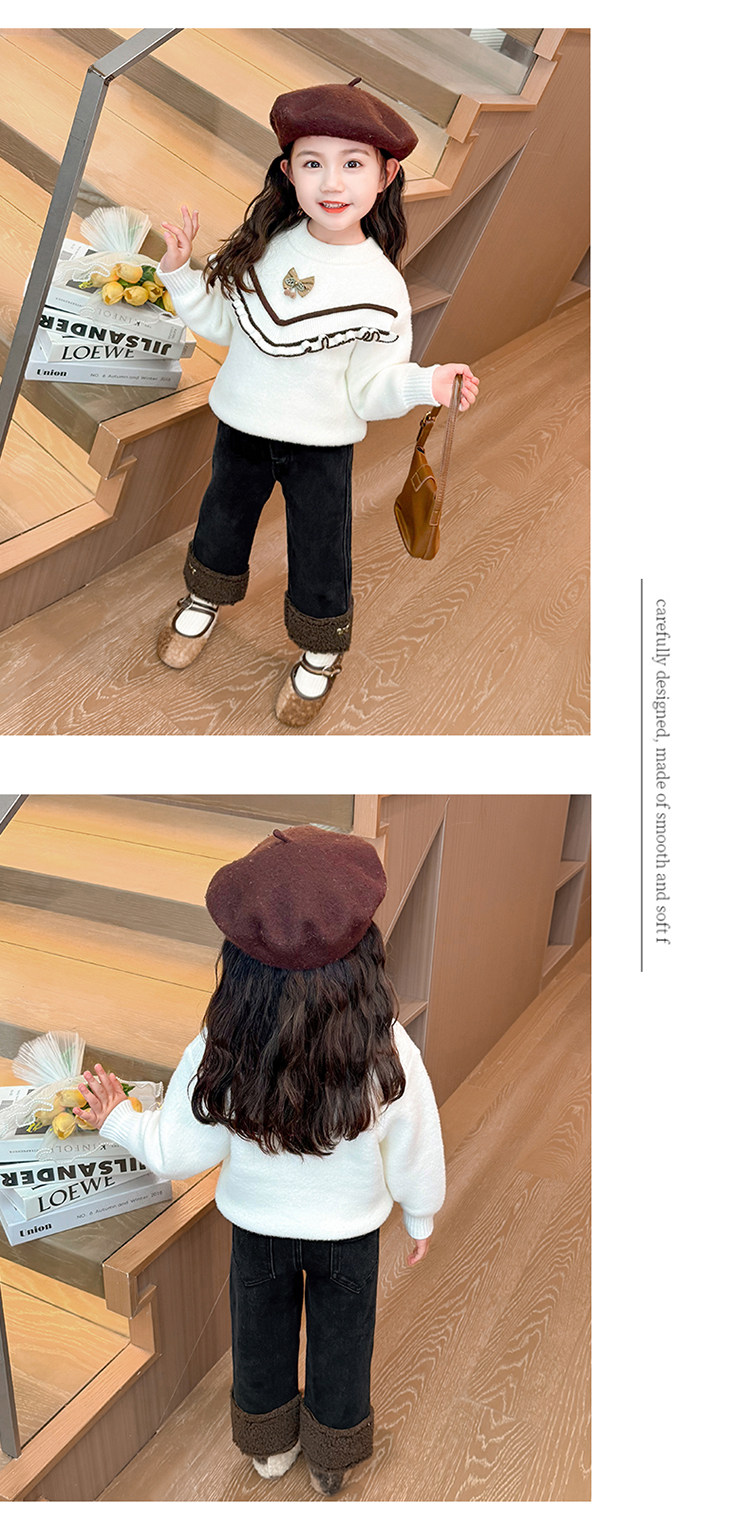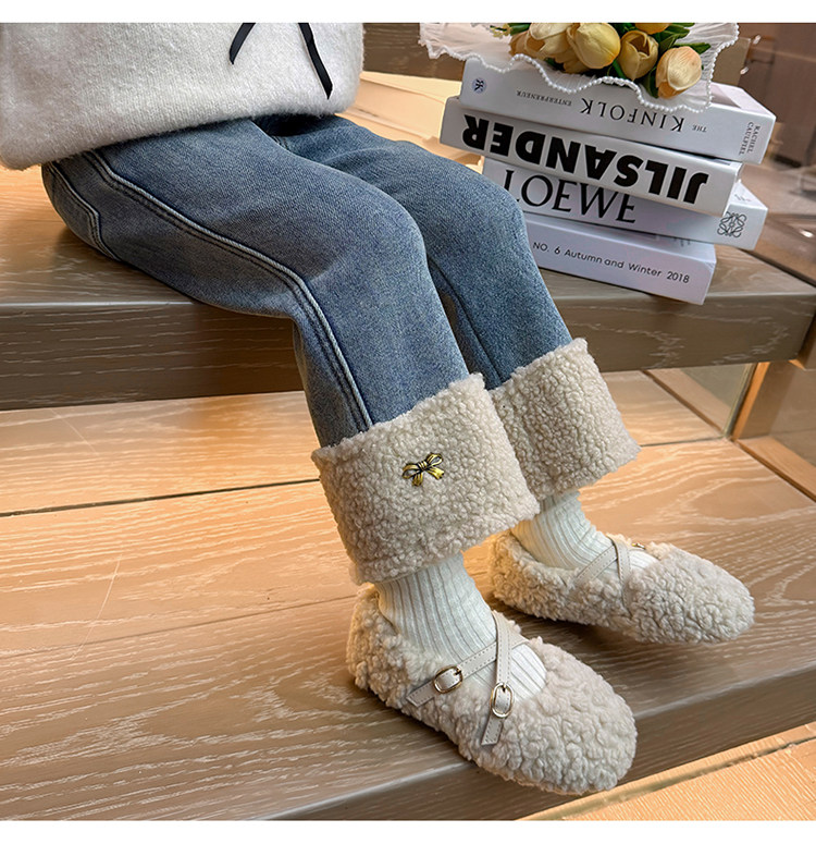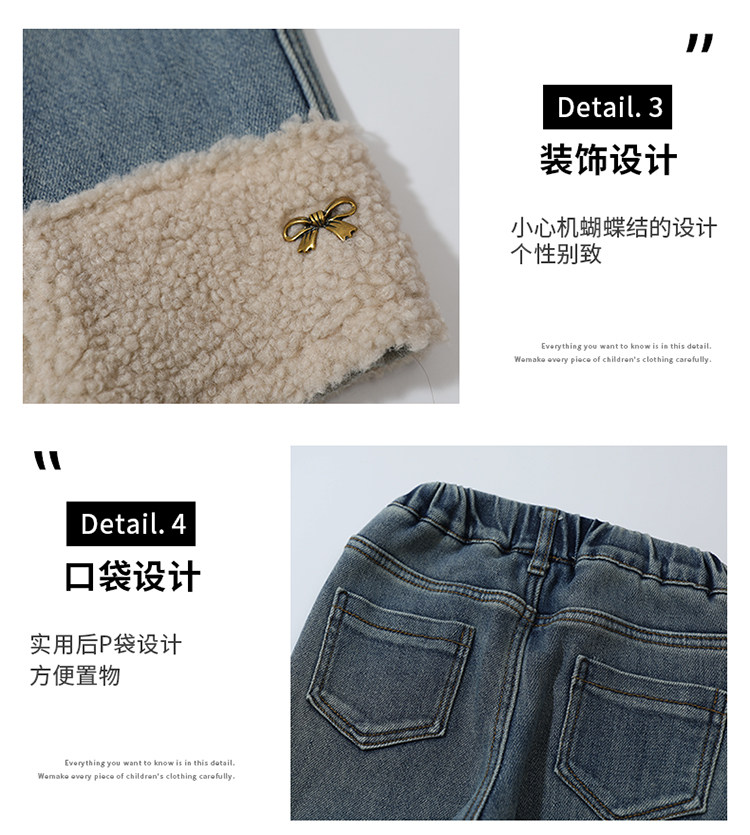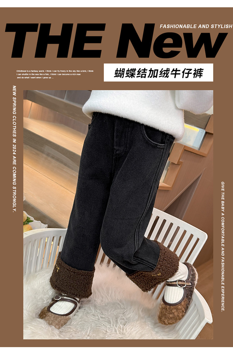 아동복 어린이 바지 소녀 기모 청바지 가을 및 겨울 어린이 바지 서양식 스트레이트 다리 바지 아기의 겨울 캐주얼 바지