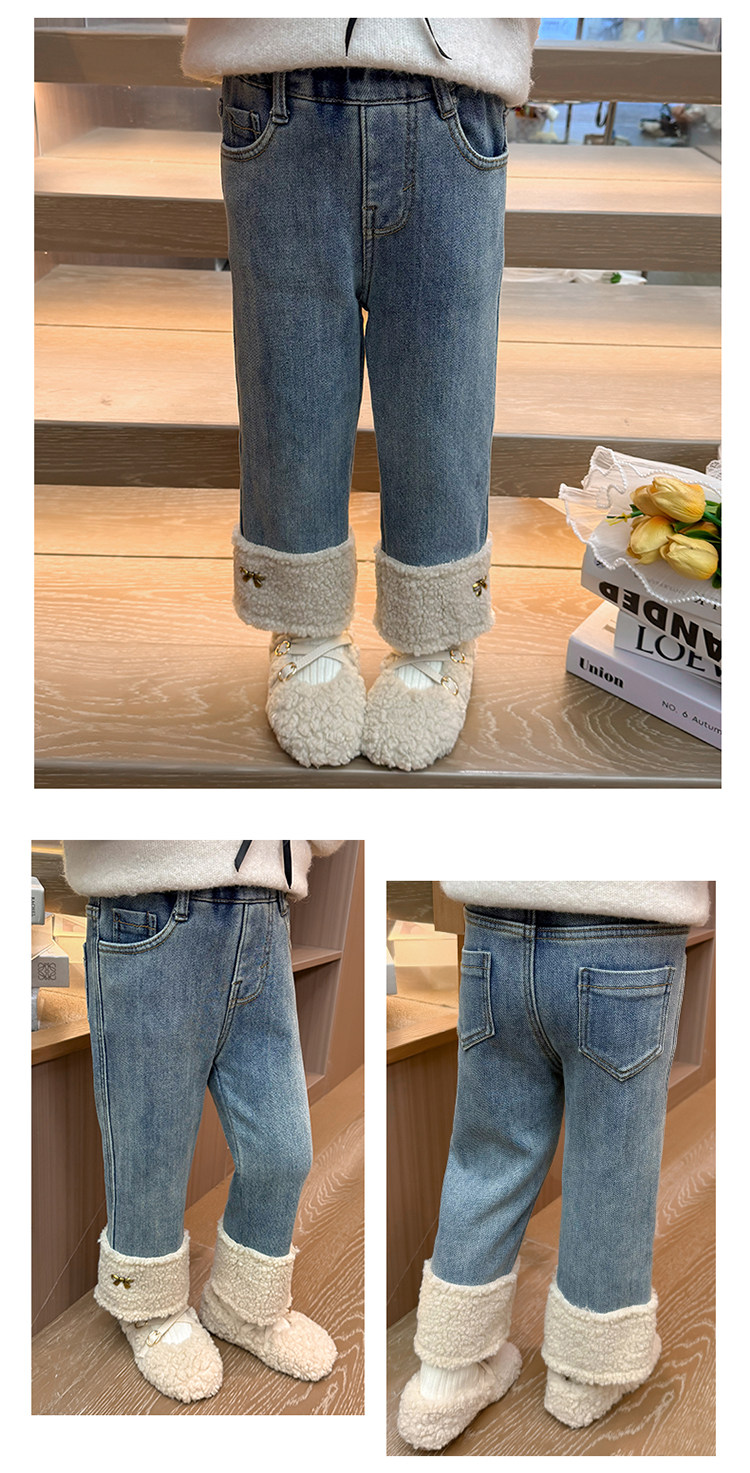 아동복 어린이 바지 소녀 기모 청바지 가을 및 겨울 어린이 바지 서양식 스트레이트 다리 바지 아기의 겨울 캐주얼 바지스토어 가기