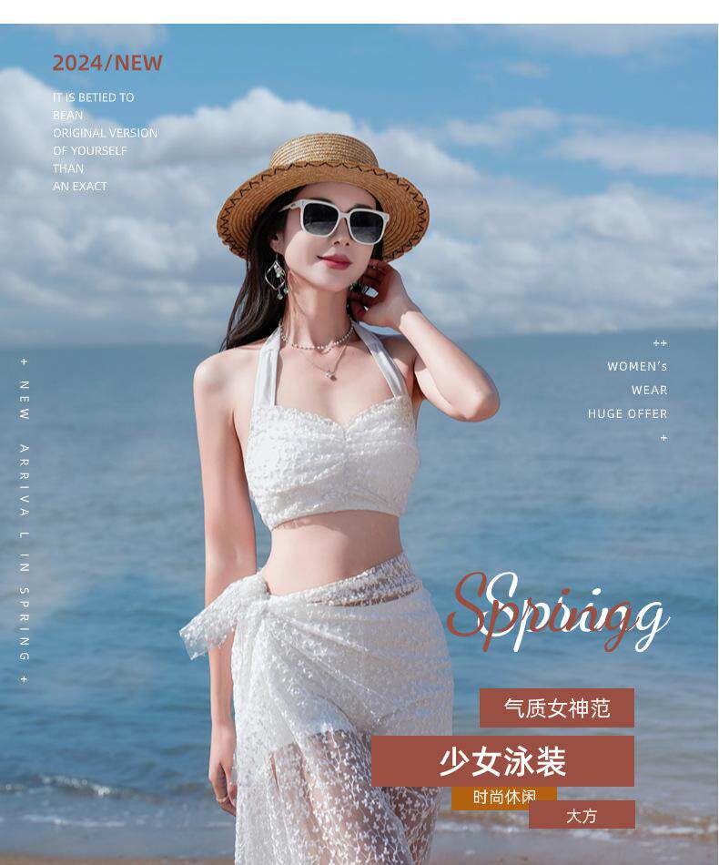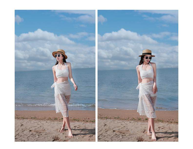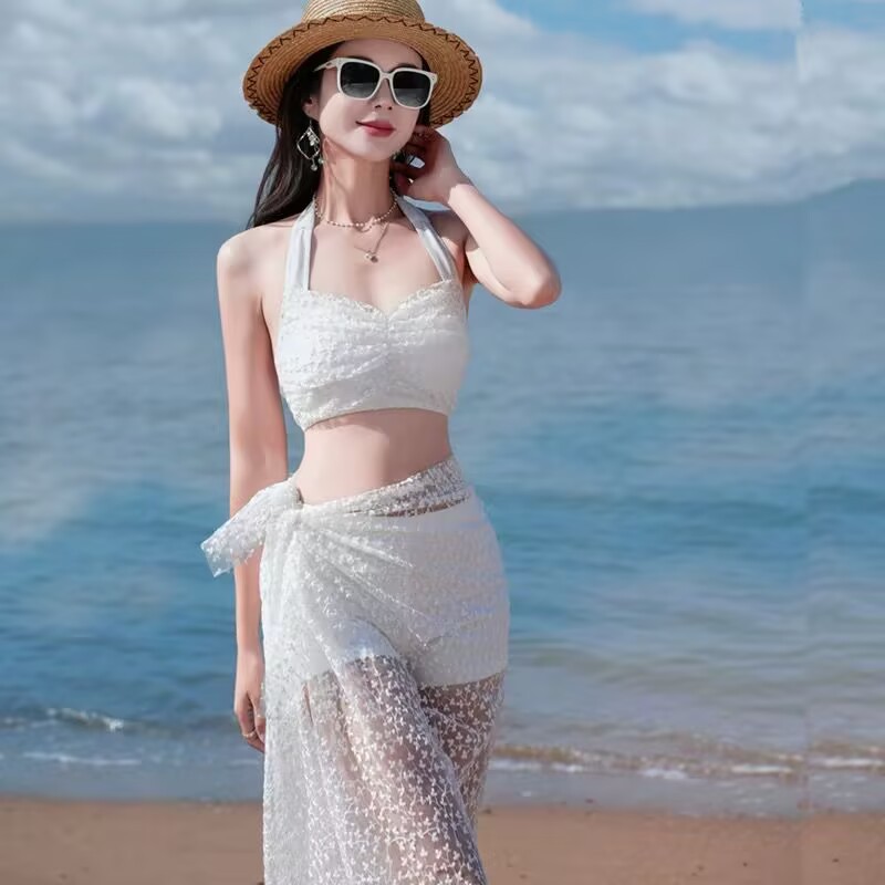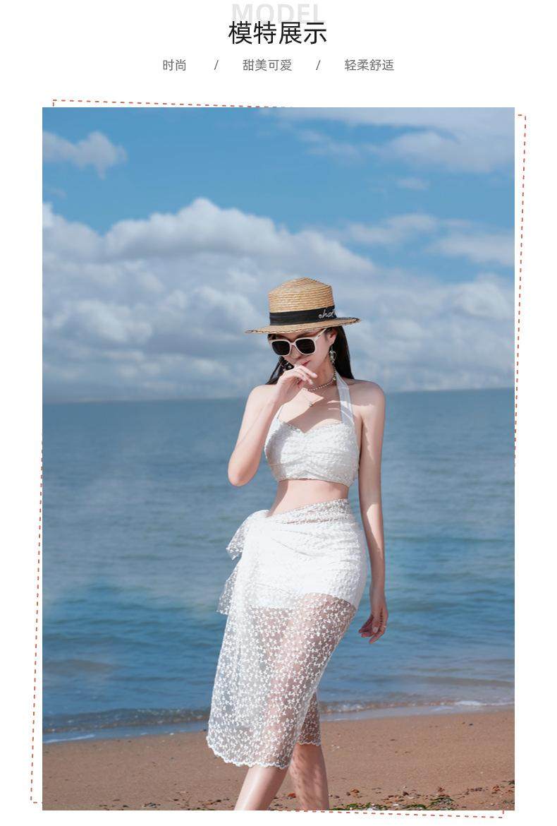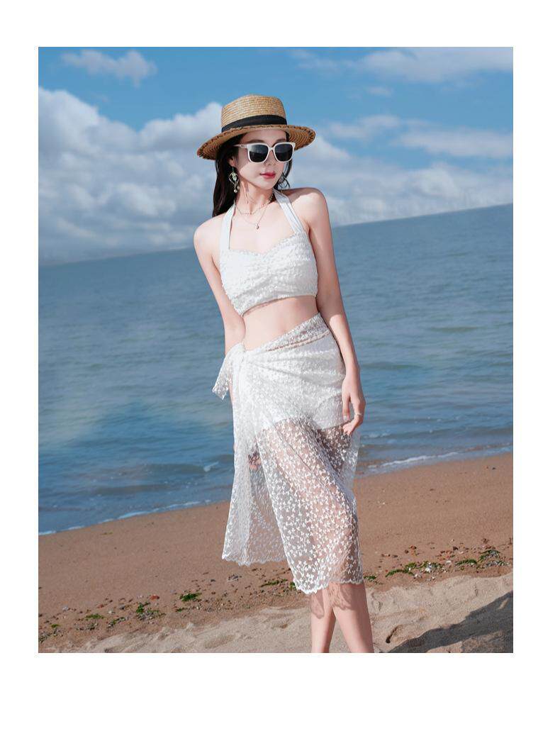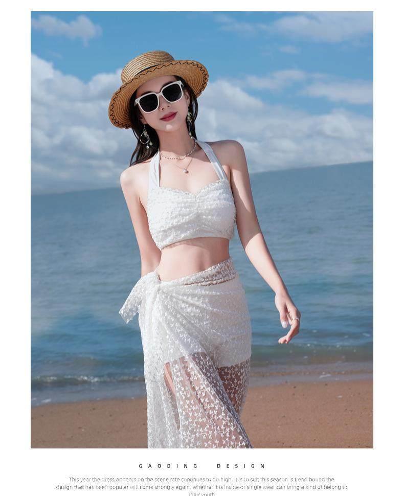 수영복 여성 섹시 스플릿 비키니 3 피스 세트 꽃 긴 원피스 모여 하이 엔드 섬 홀리데이 온천 수영복스토어 가기