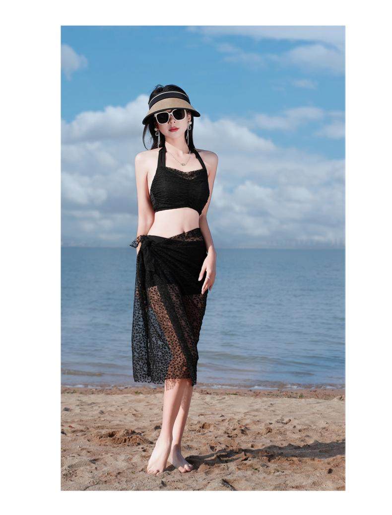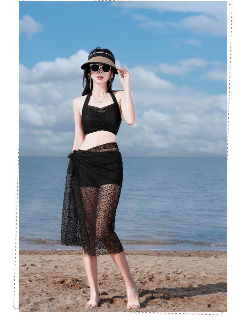 수영복 여성 섹시 스플릿 비키니 3 피스 세트 꽃 긴 원피스 모여 하이 엔드 섬 홀리데이 온천 수영복