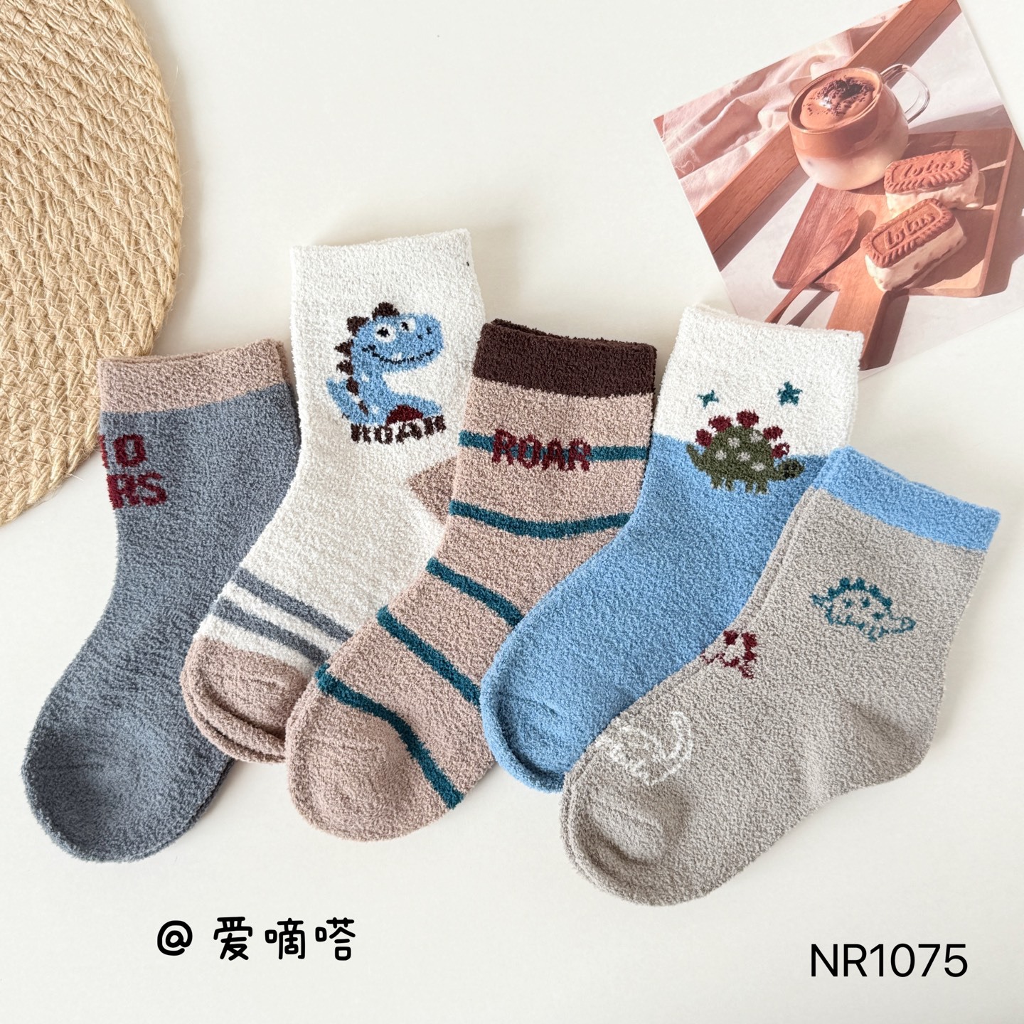 사랑 진드기 어린이 양말 겨울 기모 두꺼운 양면 벨벳 스타킹 소년 만화 공룡 따뜻한 양말 수면