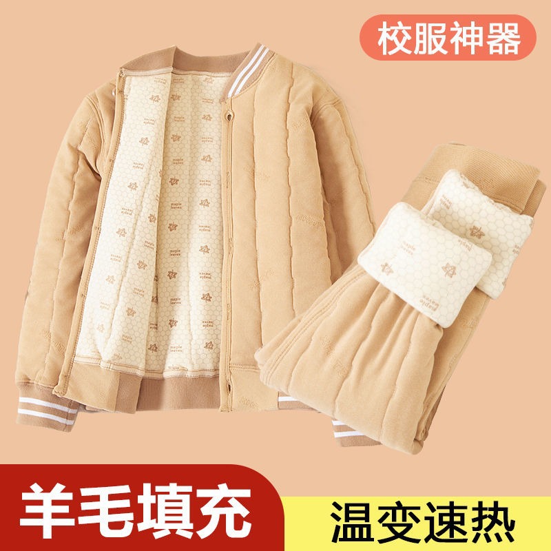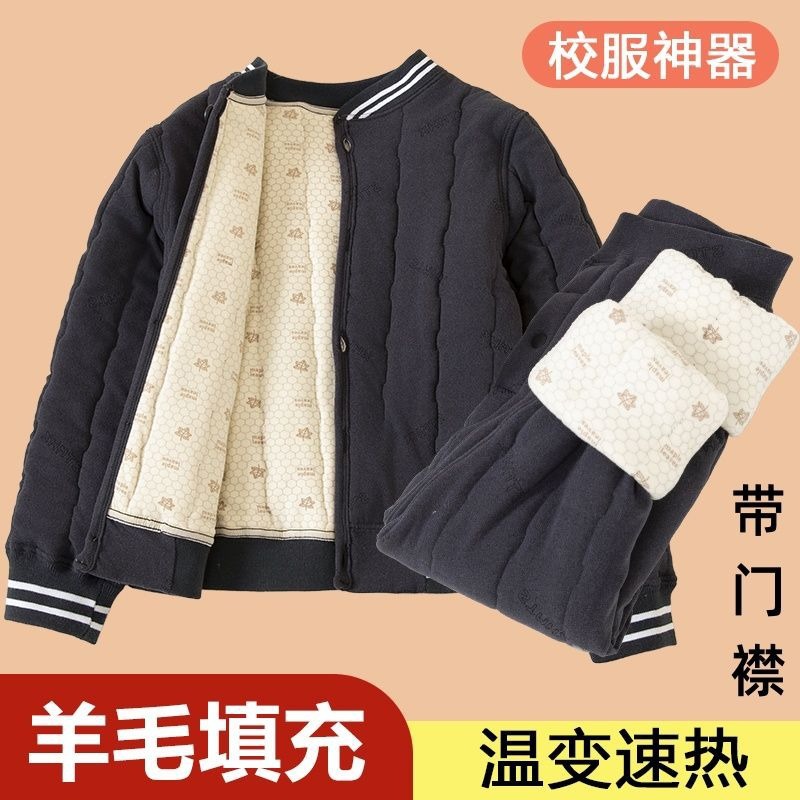 학교 유니폼 가을 겨울 어린이 열 속옷 세트 기모 두꺼운 소년 소녀 가을 옷 가을 바지 따뜻한 옷