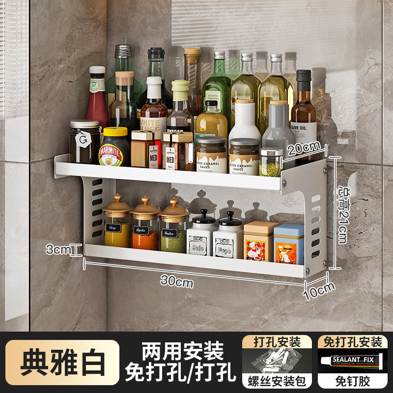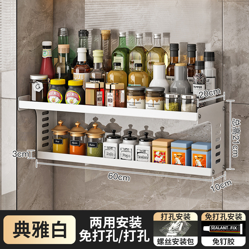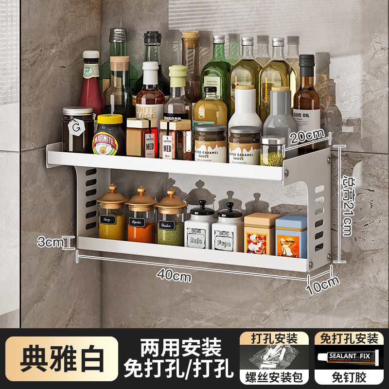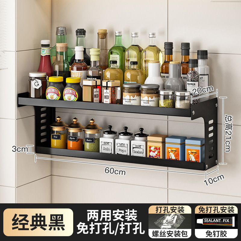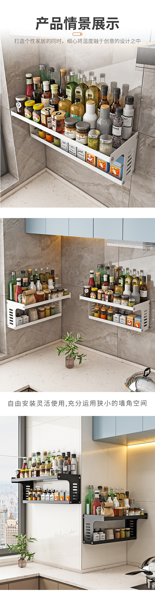 주방 스토리지 랙 벽걸이 형 펀치 프리 스토리지 선반 새 스타일 벽 조미료 스토리지 랙 가정용 조미료 랙스토어 가기