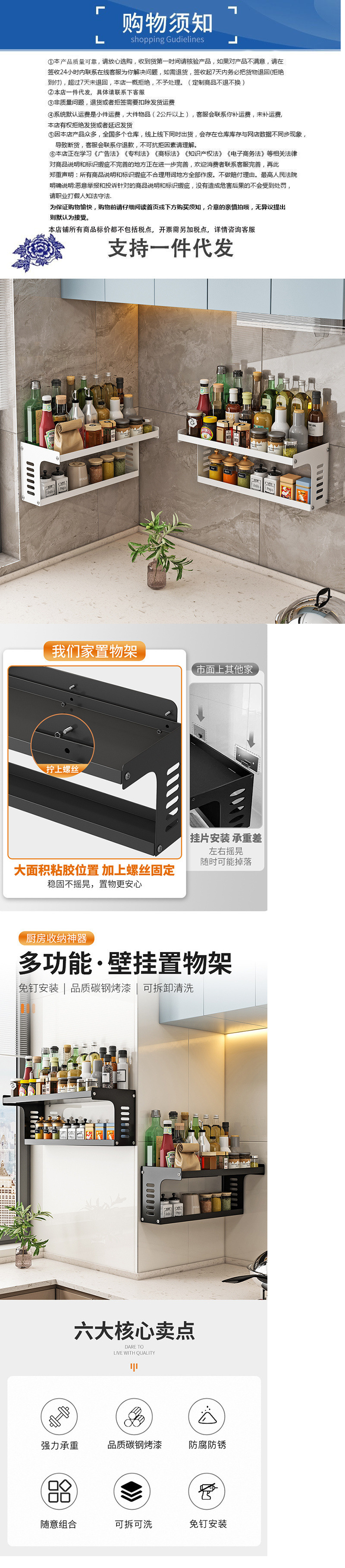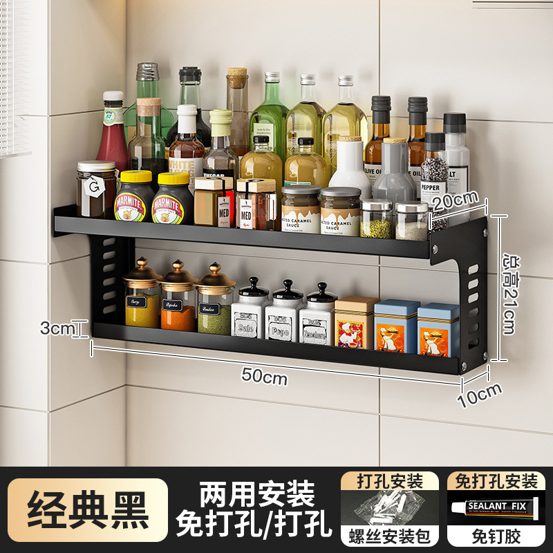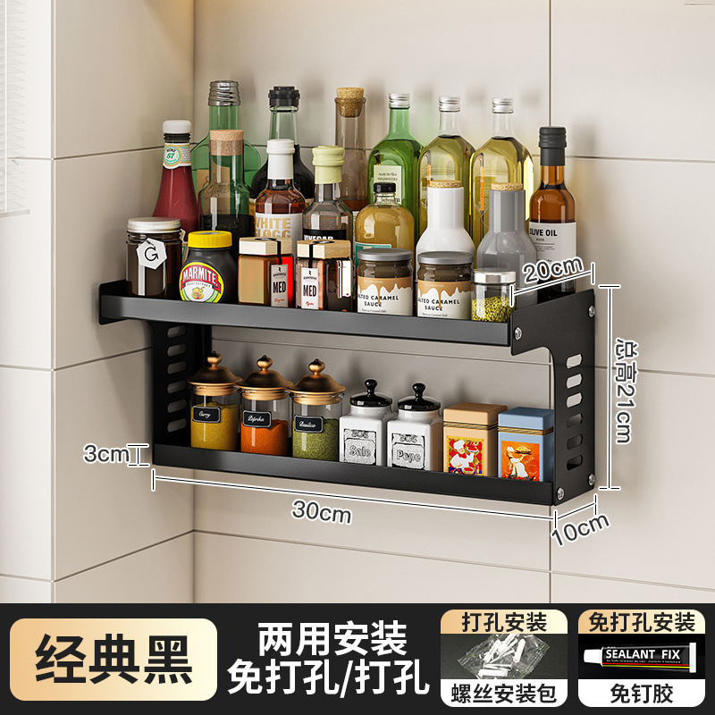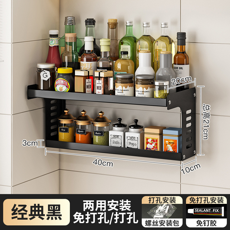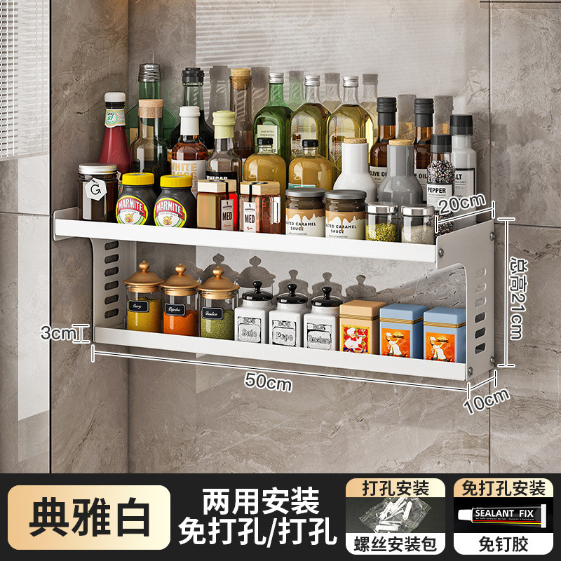주방 스토리지 랙 벽걸이 형 펀치 프리 스토리지 선반 새 스타일 벽 조미료 스토리지 랙 가정용 조미료 랙스토어 가기