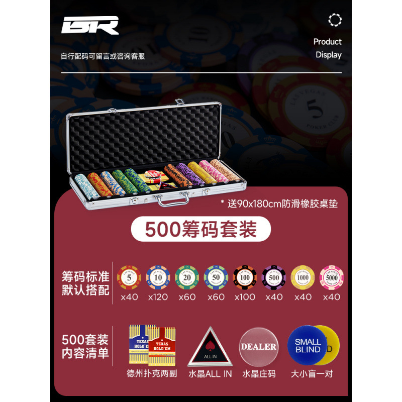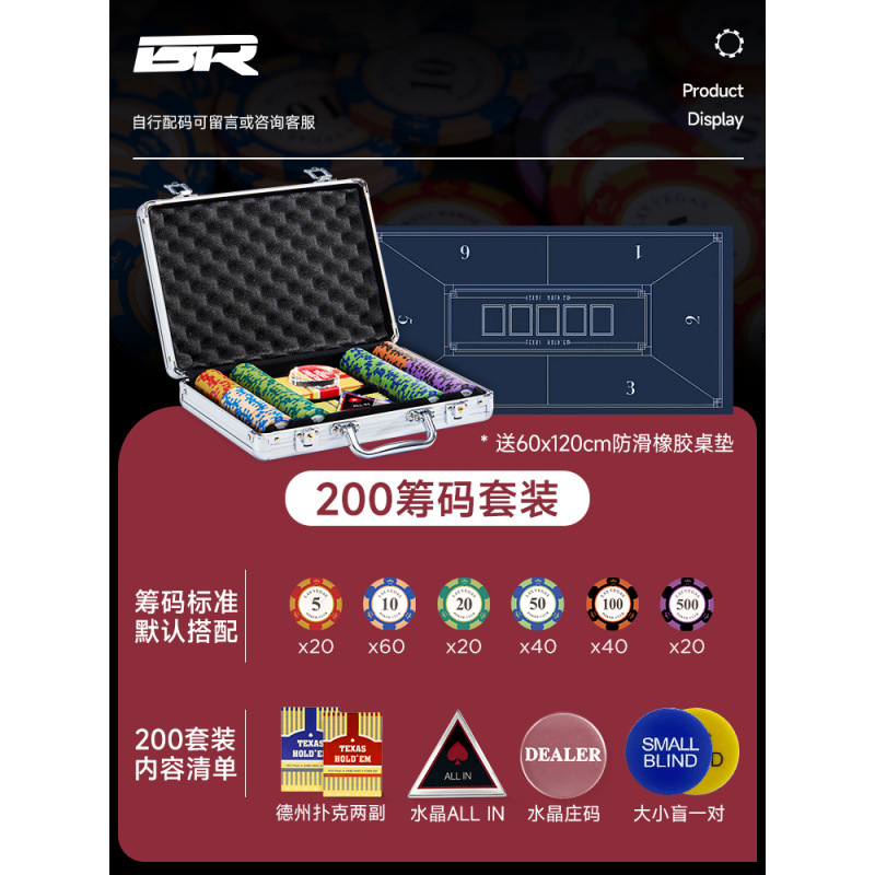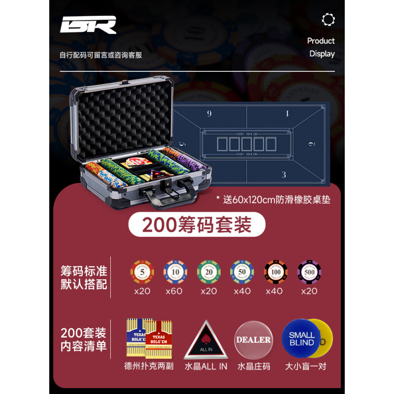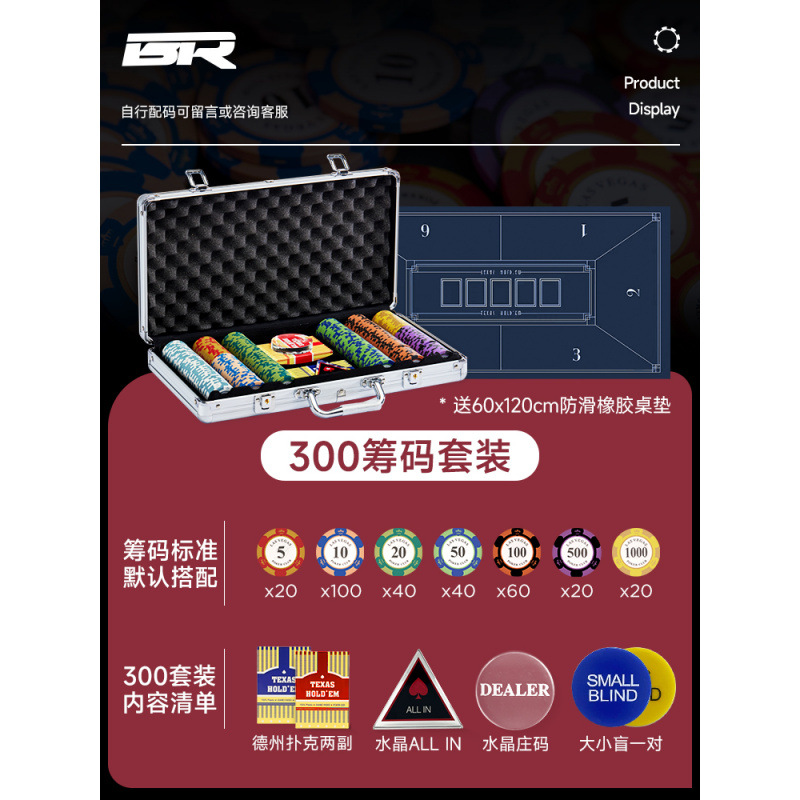 • 칩 300개 + [표준 은색 알루미늄 상자] + 1.2m 식탁보 + 5-7인 업그레이드 버전
