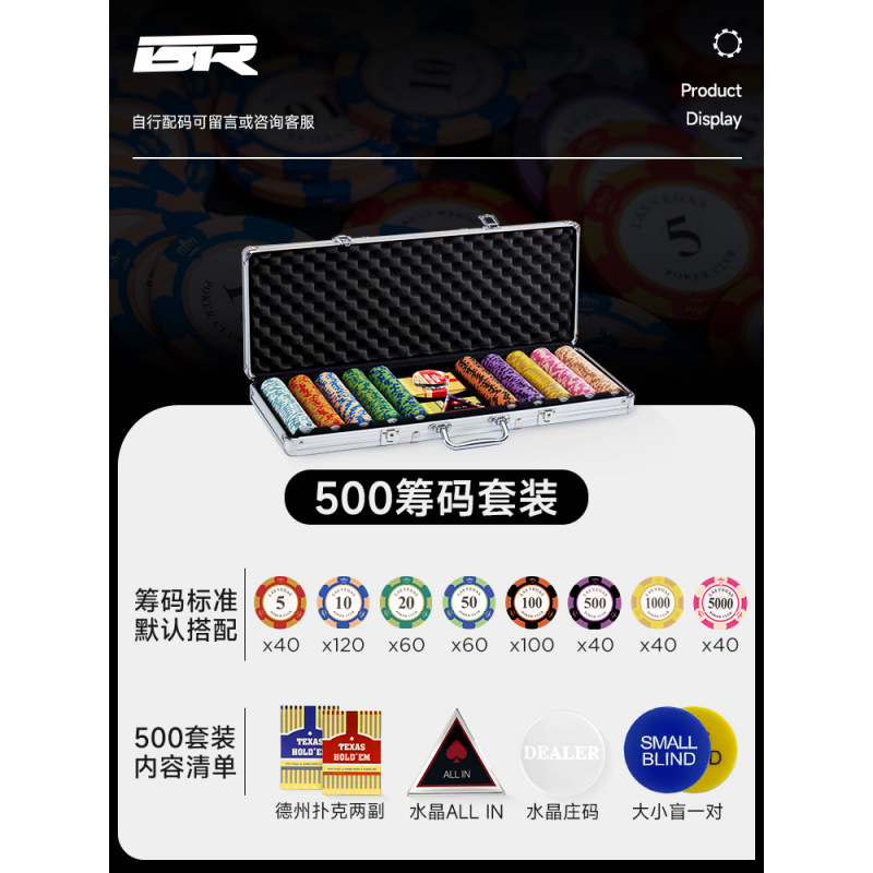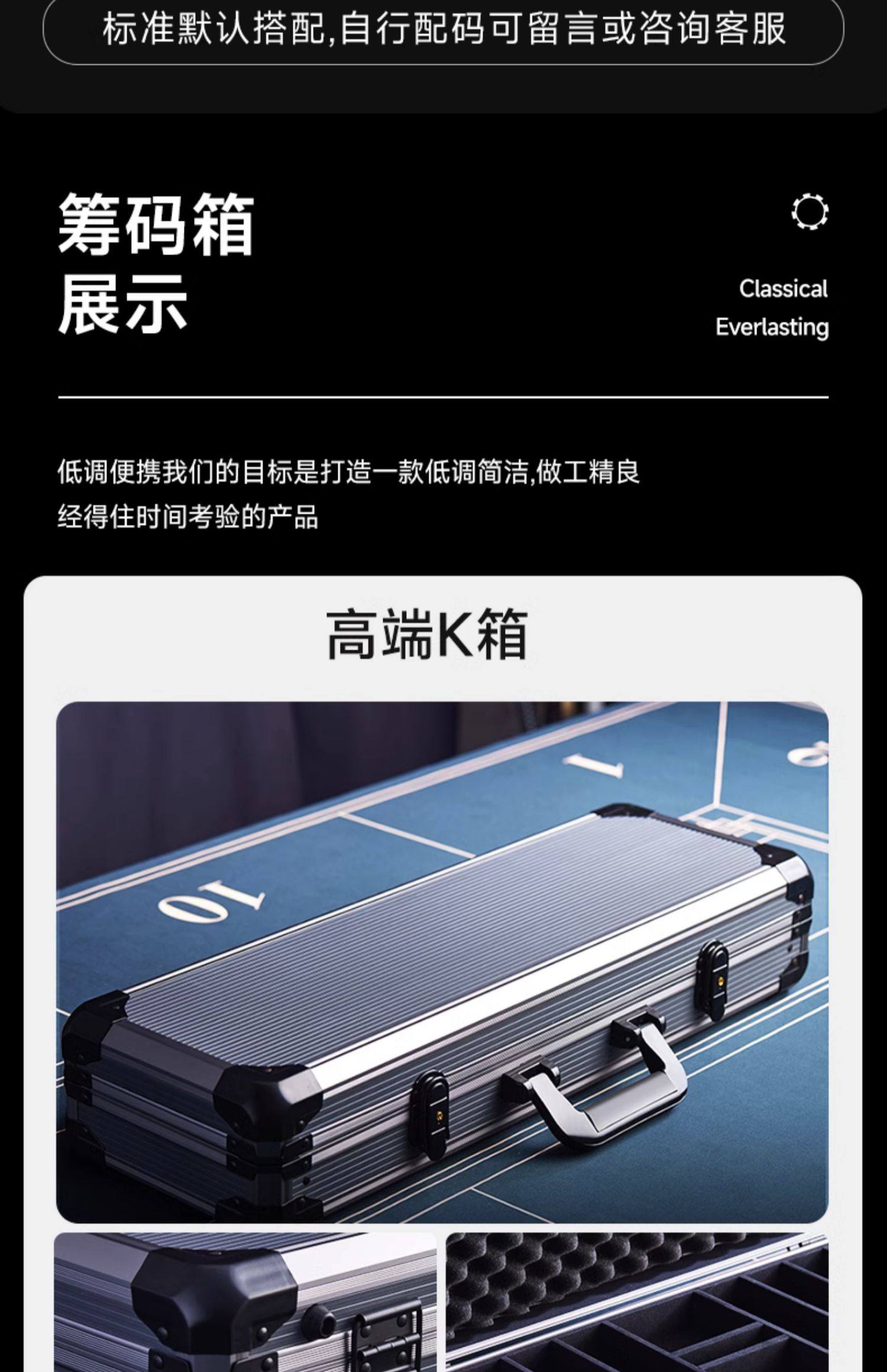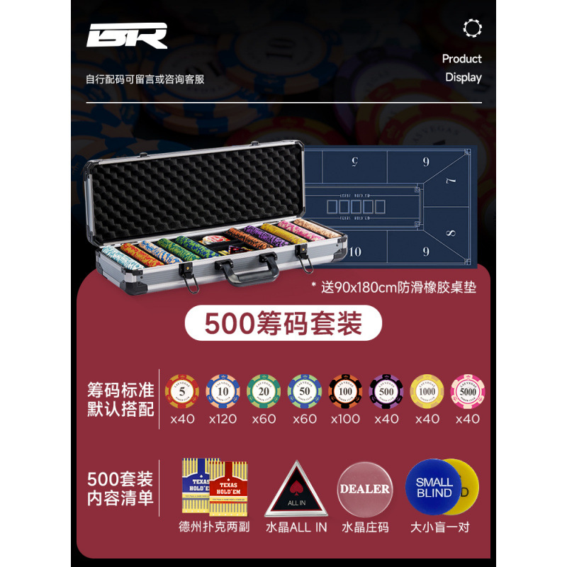 • 500개의 칩 + [표준 은색 알루미늄 상자] + 1.8m 식탁보 + 6-10인 업그레이드 버전