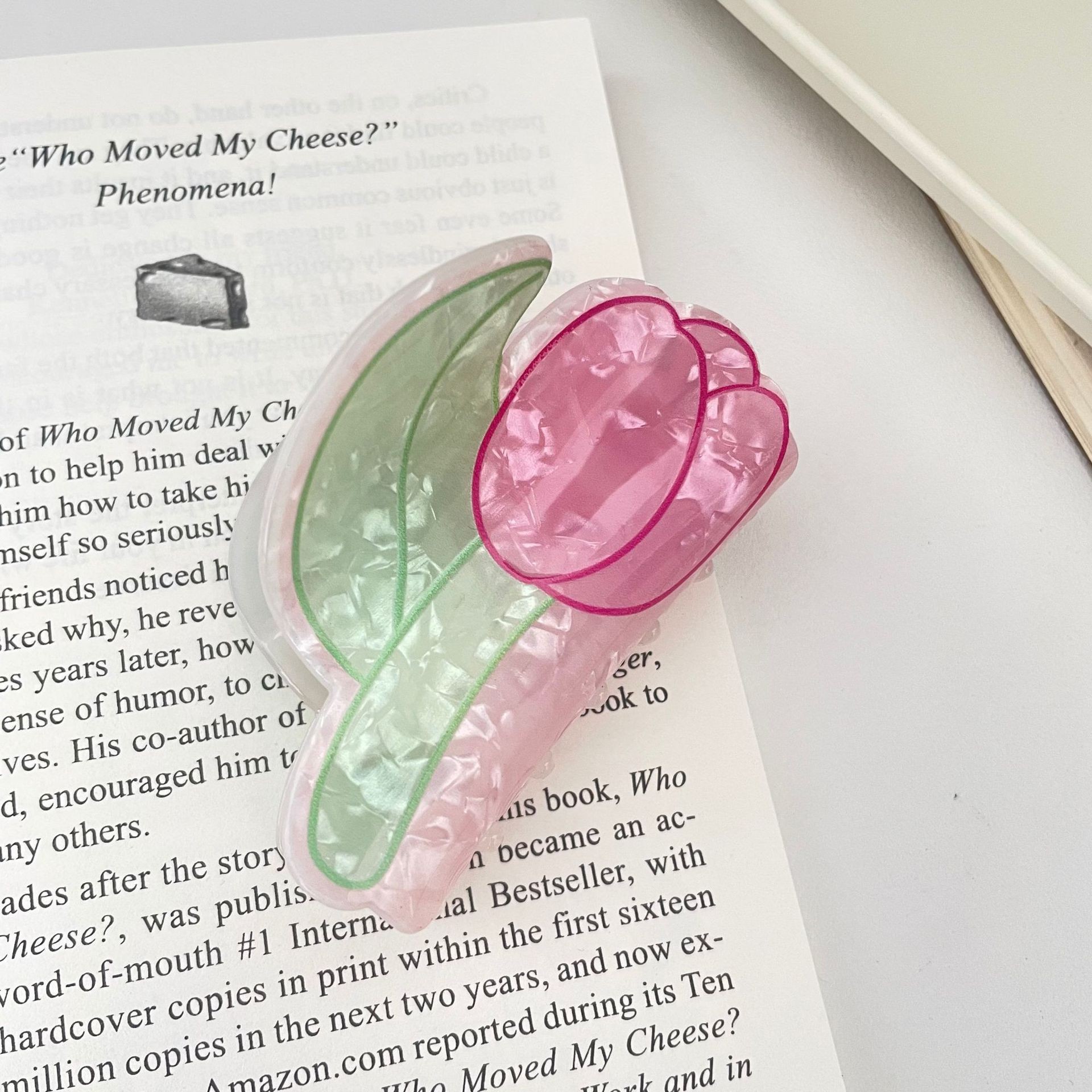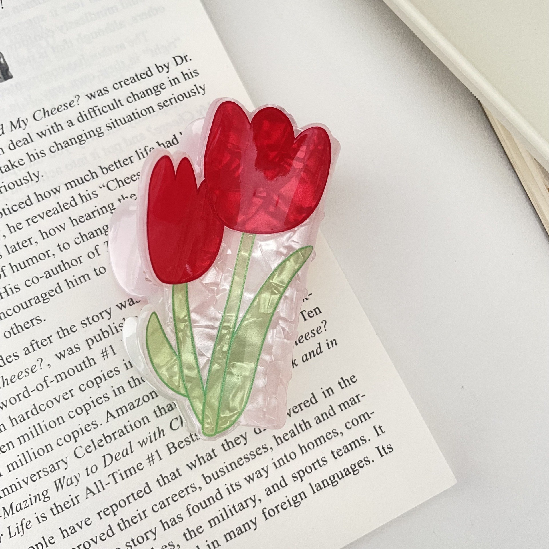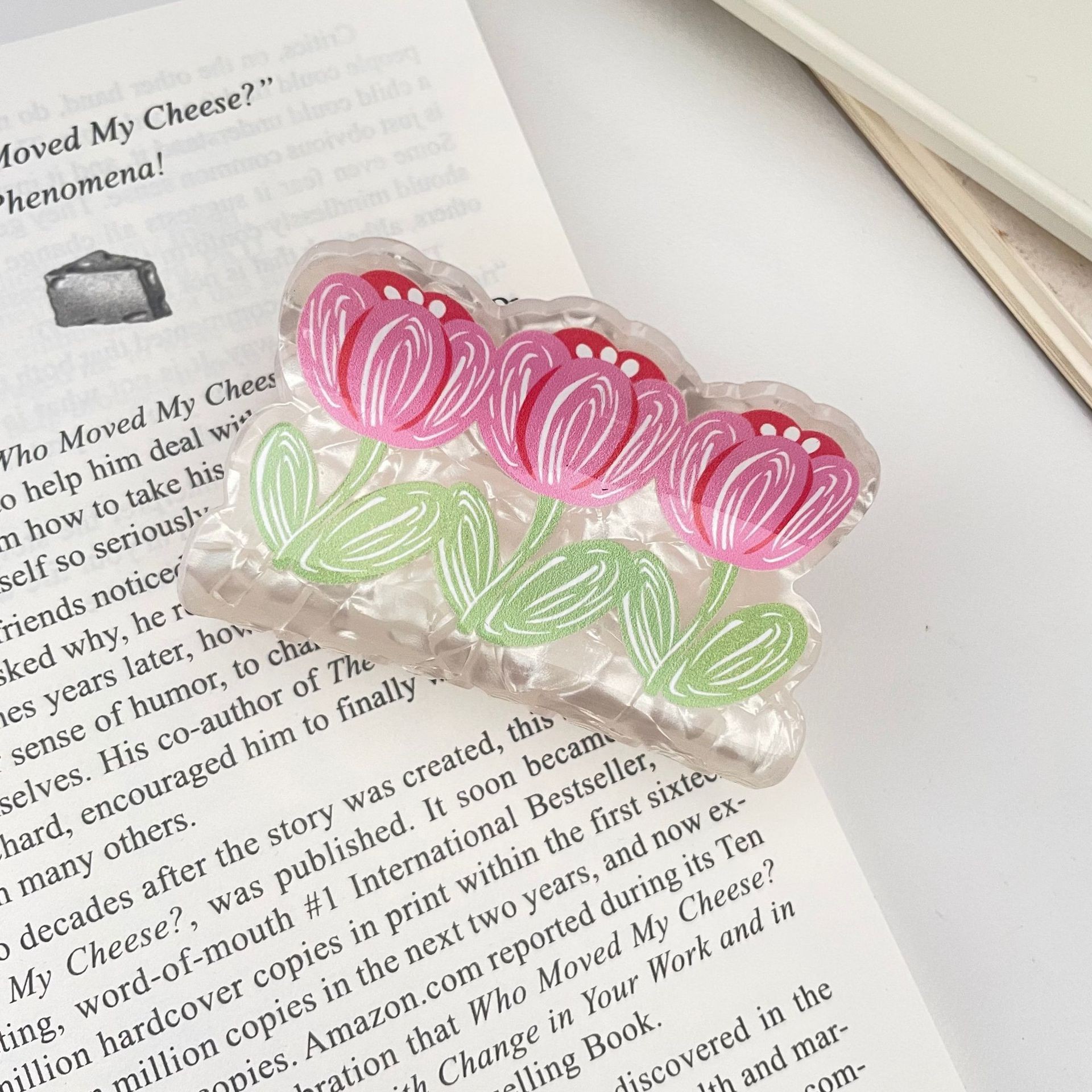 헤어 액세서리 여성의 2024 새로운 달콤한 튤립 꽃 헤어핀 아크릴 신선한 클램프 헤어 상어 클립스토어 가기