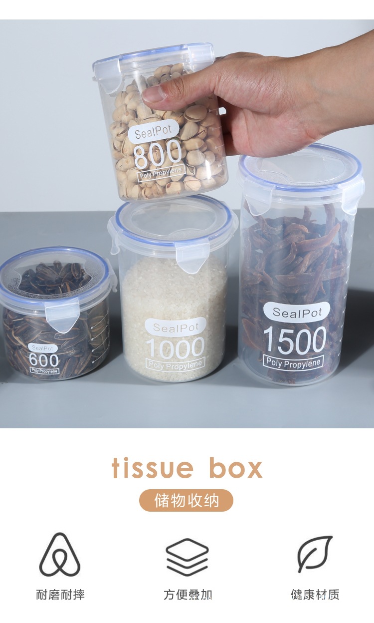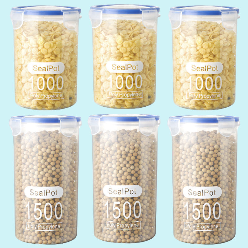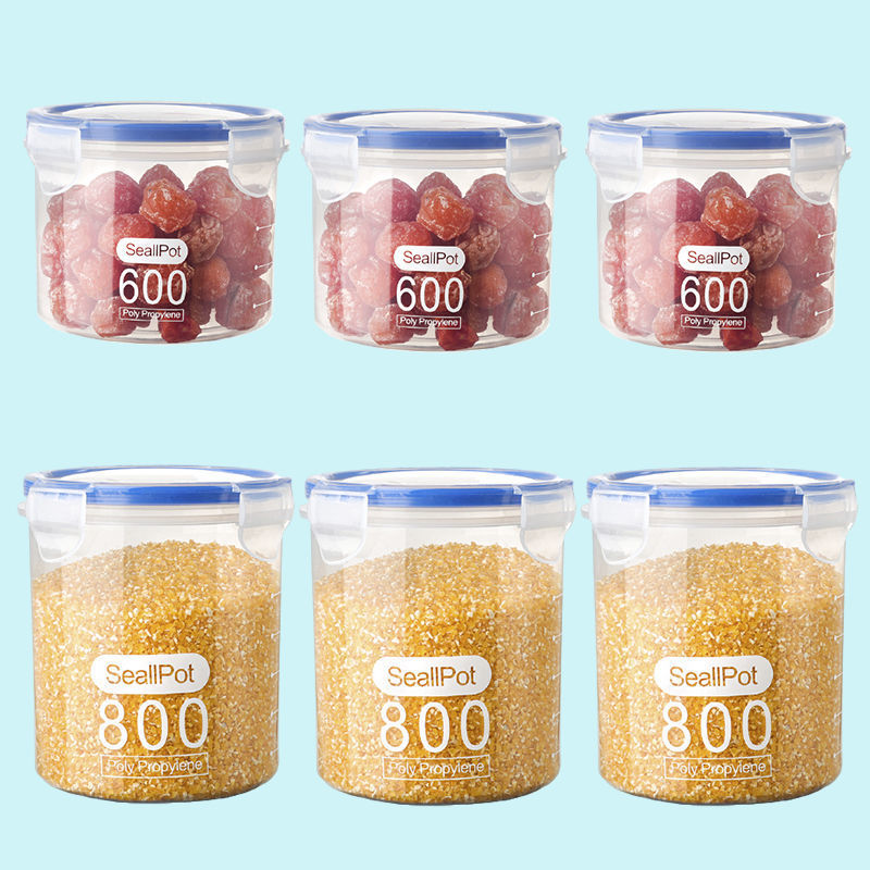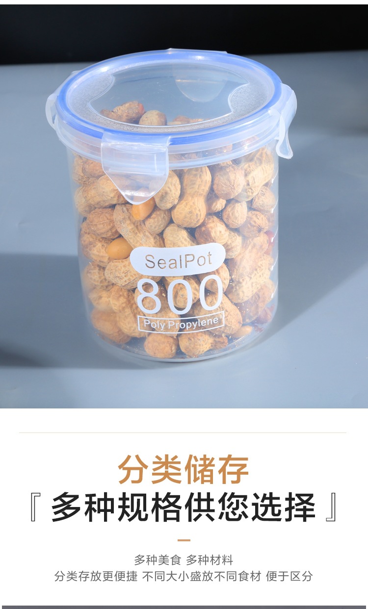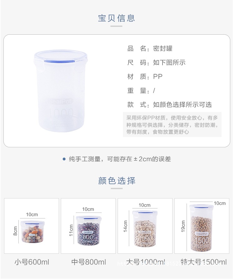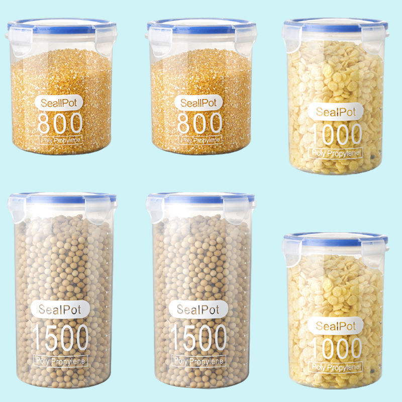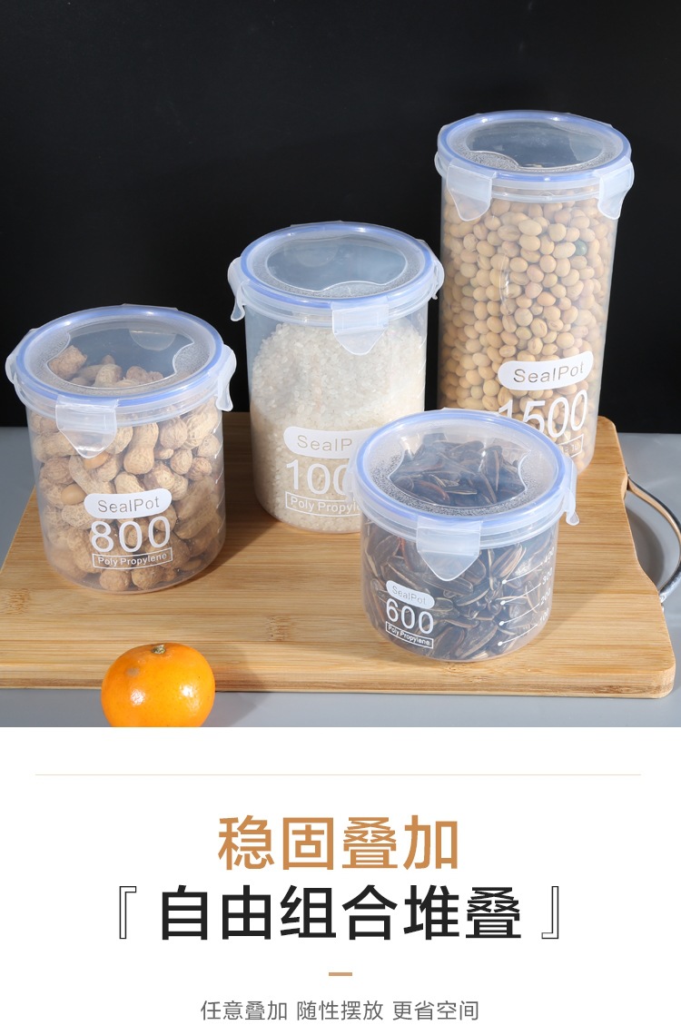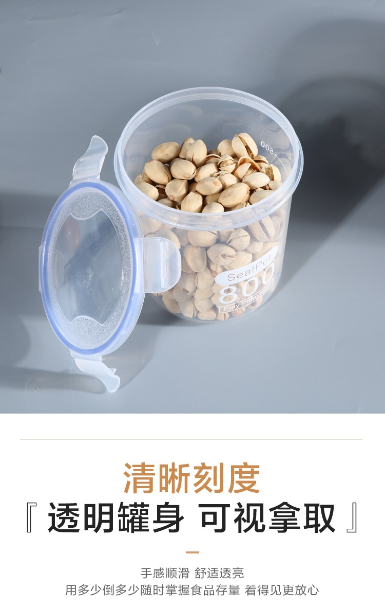 투명한 플라스틱 밀봉 된 항아리 우유 분말 항아리 뚜껑 주방 곡물 저장 상자 저장 항아리가있는 둥근 음식 항아리