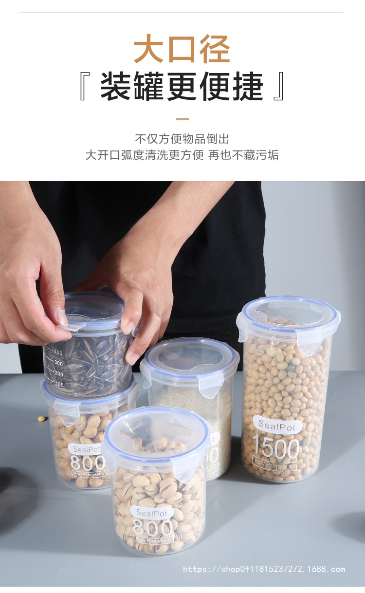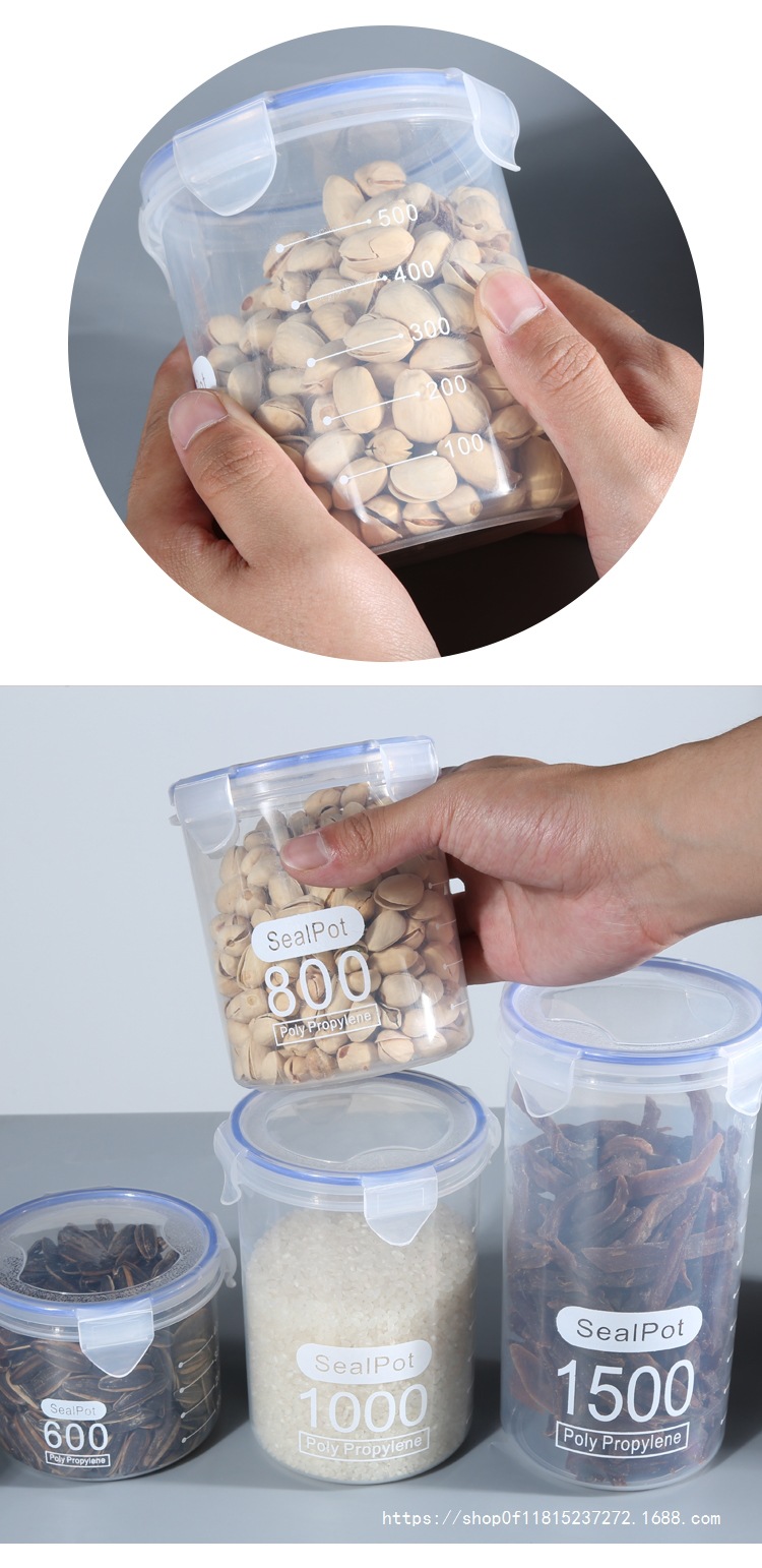 투명한 플라스틱 밀봉 된 항아리 우유 분말 항아리 뚜껑 주방 곡물 저장 상자 저장 항아리가있는 둥근 음식 항아리스토어 가기