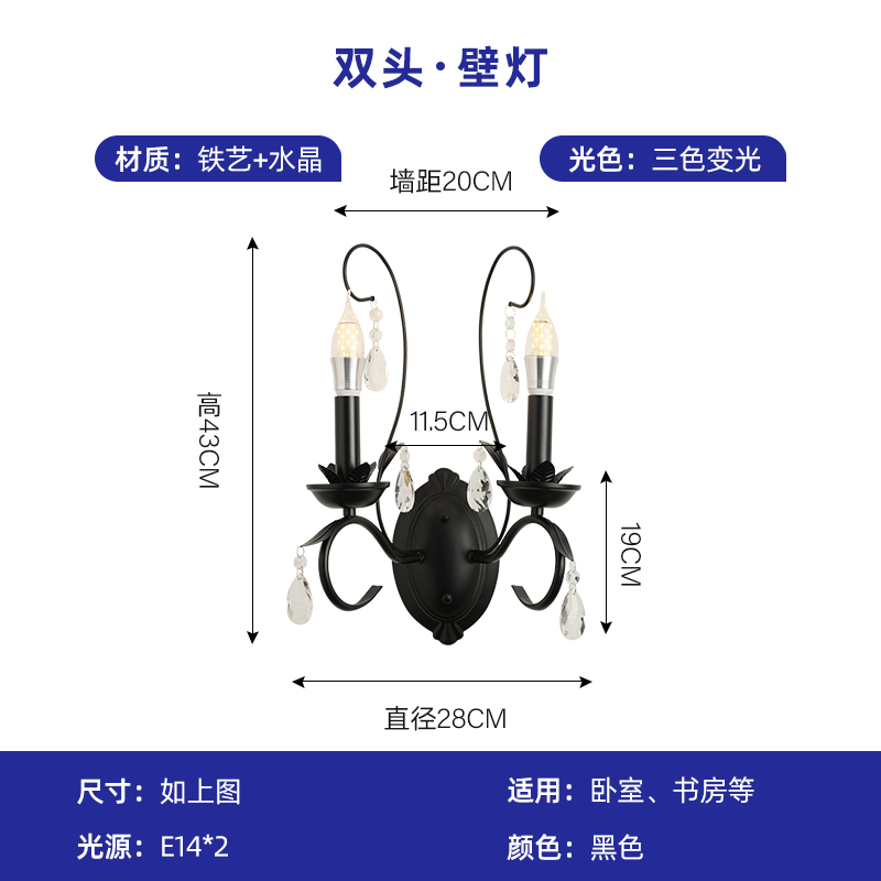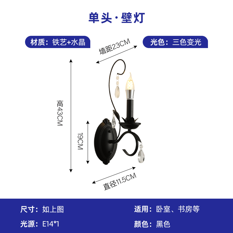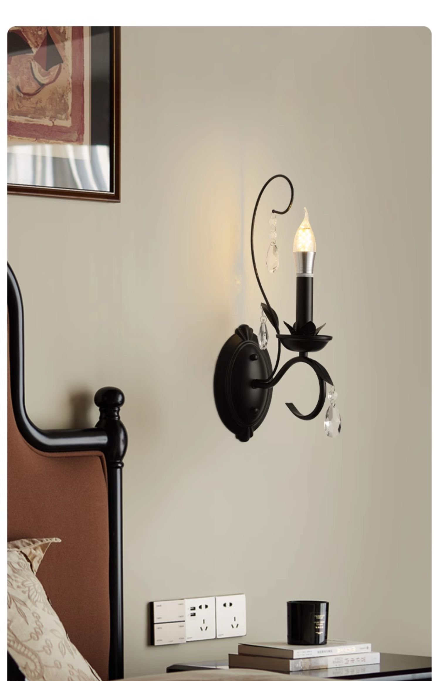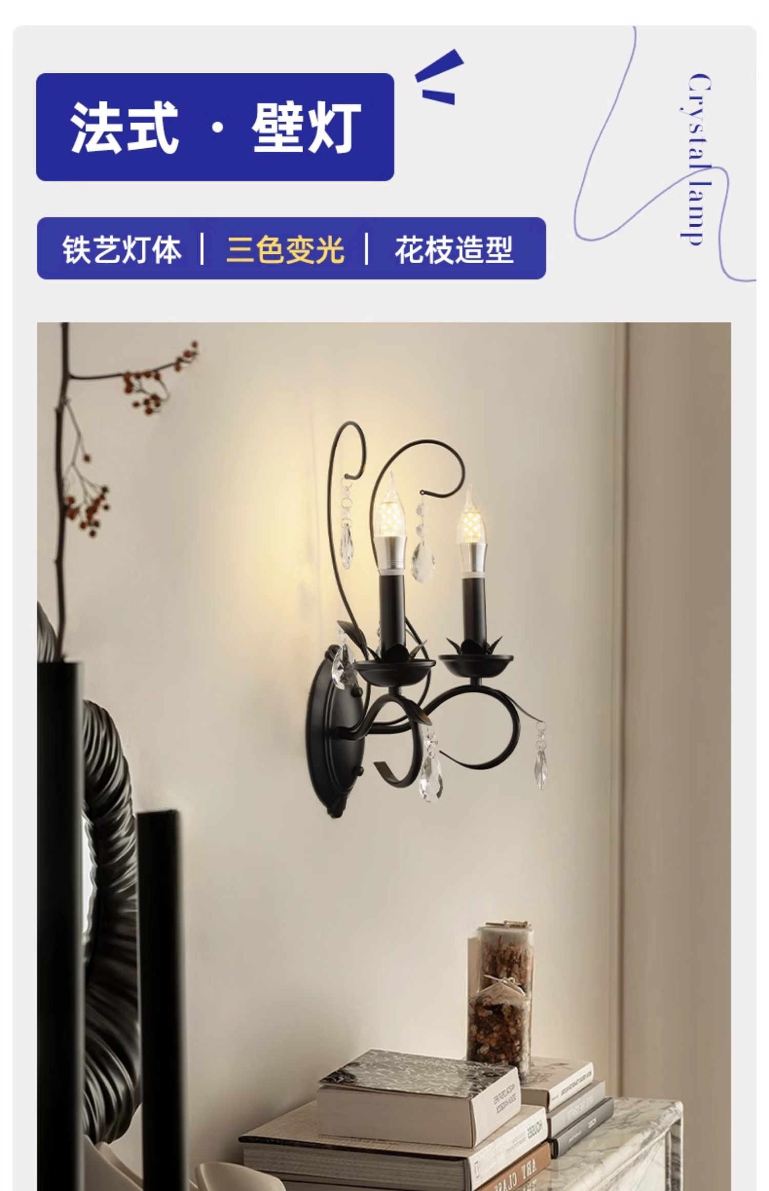 밝은 색 미국 복고풍 크리스탈 벽 램프 프랑스 거실 배경 벽 통로 발코니 침실 램프스토어 가기