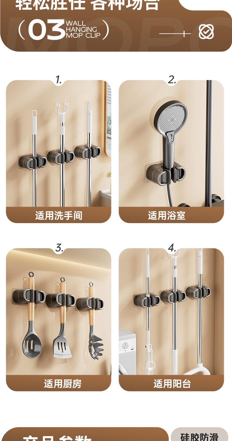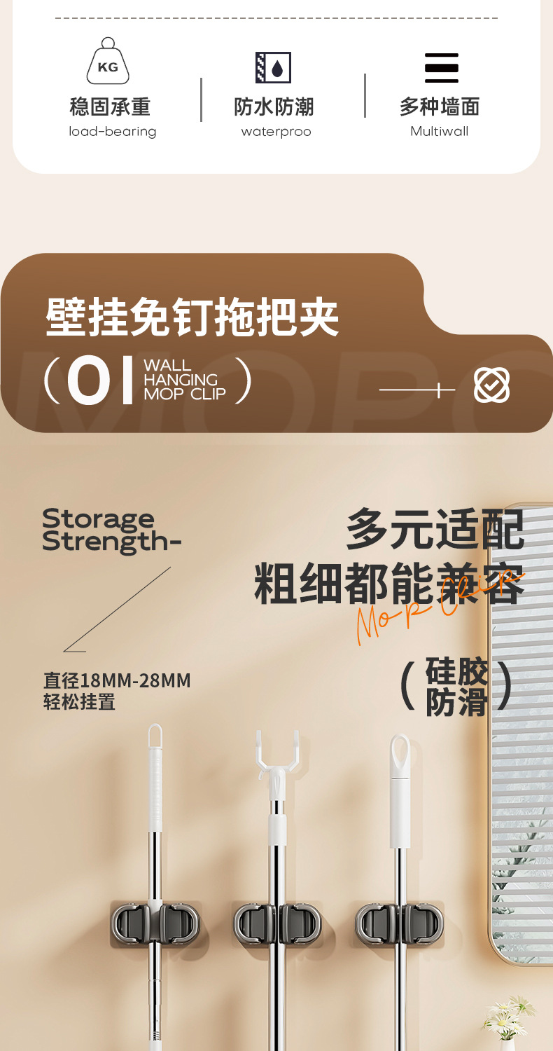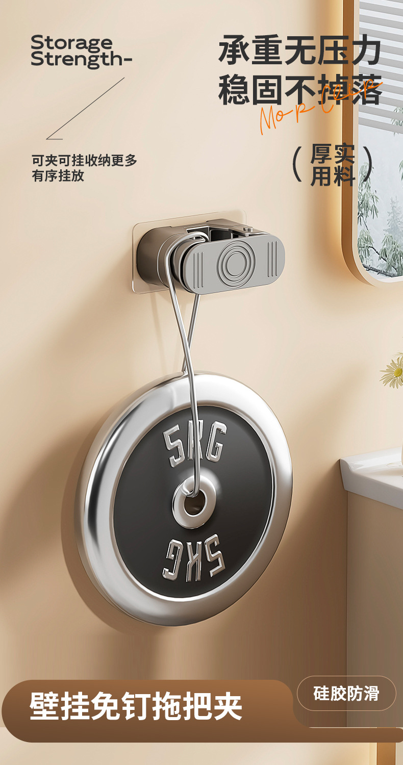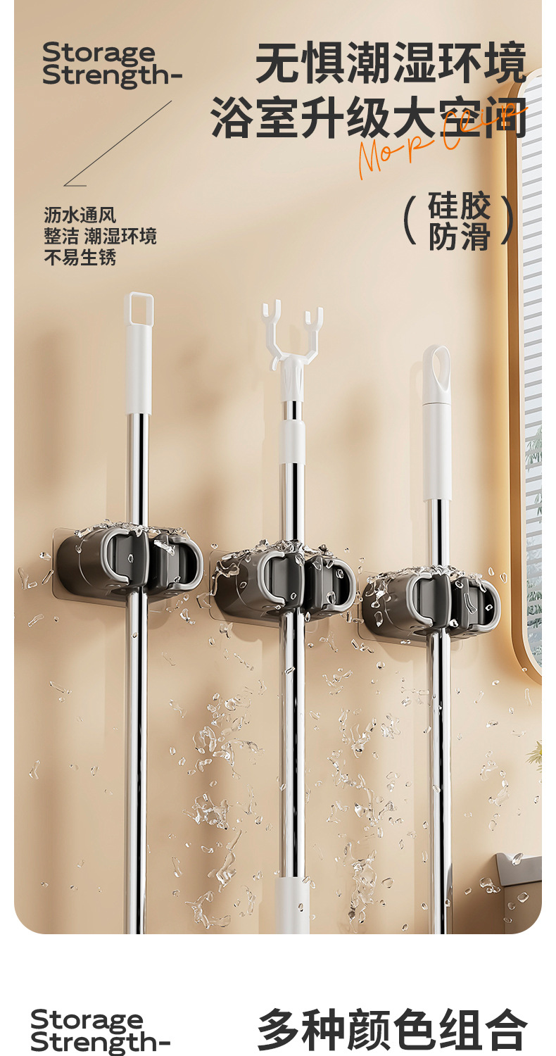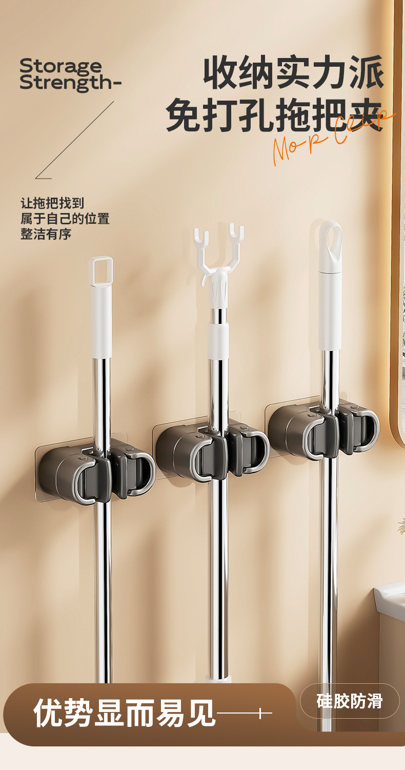 구멍이 없는 벽걸이형 걸레 및 빗자루 홀더, 휴대용 욕실 가정용 화장실 기숙사 보관함, 문 뒤 보관함 도매스토어 가기