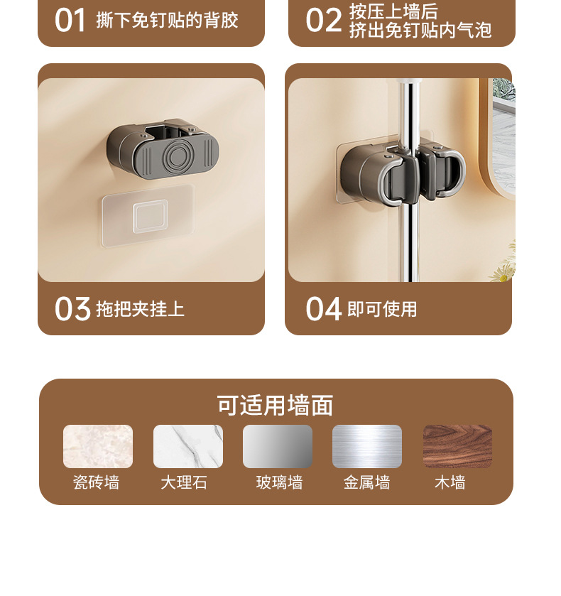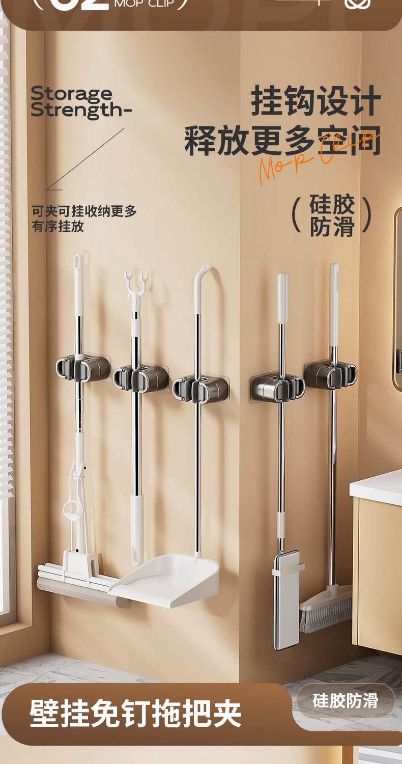 구멍이 없는 벽걸이형 걸레 및 빗자루 홀더, 휴대용 욕실 가정용 화장실 기숙사 보관함, 문 뒤 보관함 도매