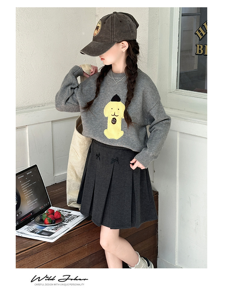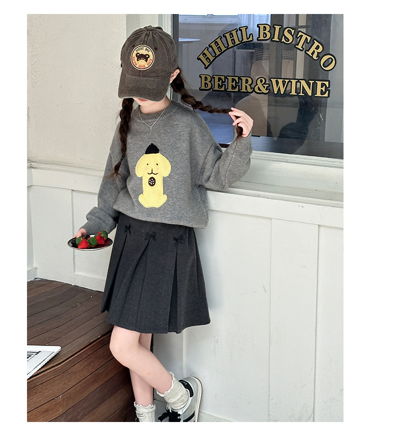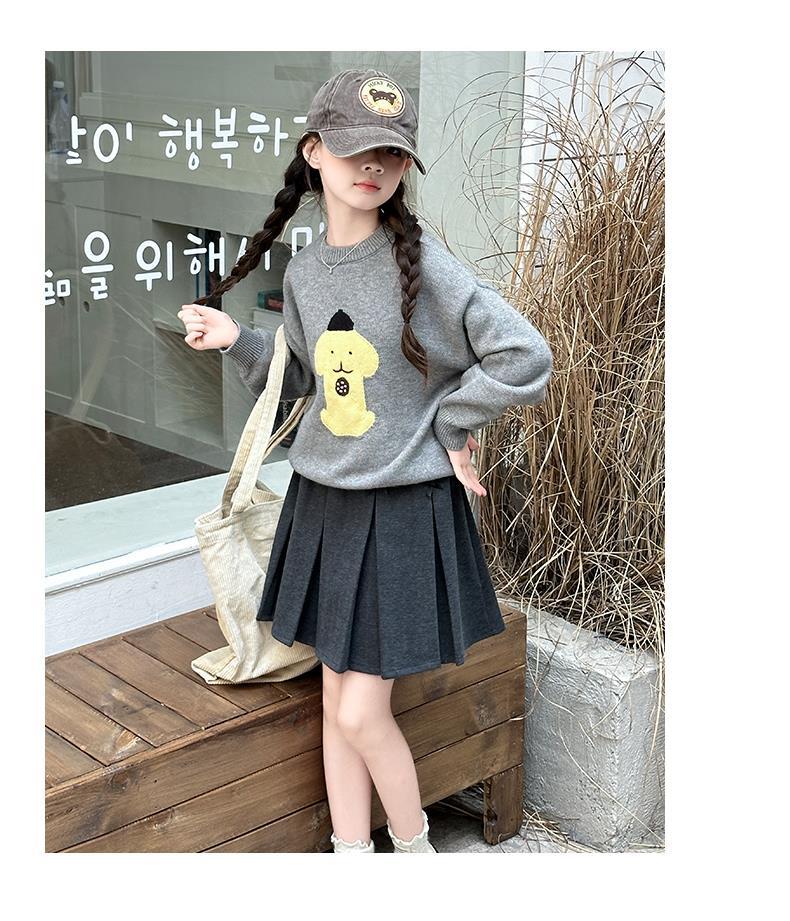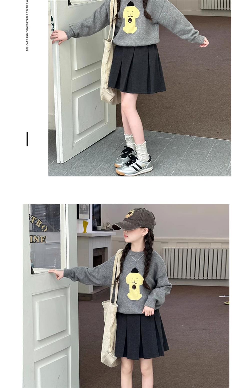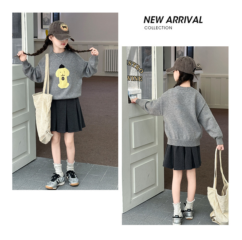 어린이 스웨터 가을과 겨울 2024 새로운 서양식 큰 아이들 따뜻한 겨울 소녀의 니트 베이스 그레이 탑
