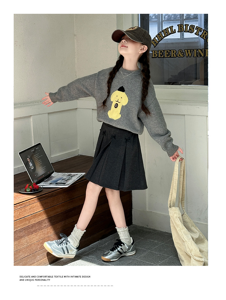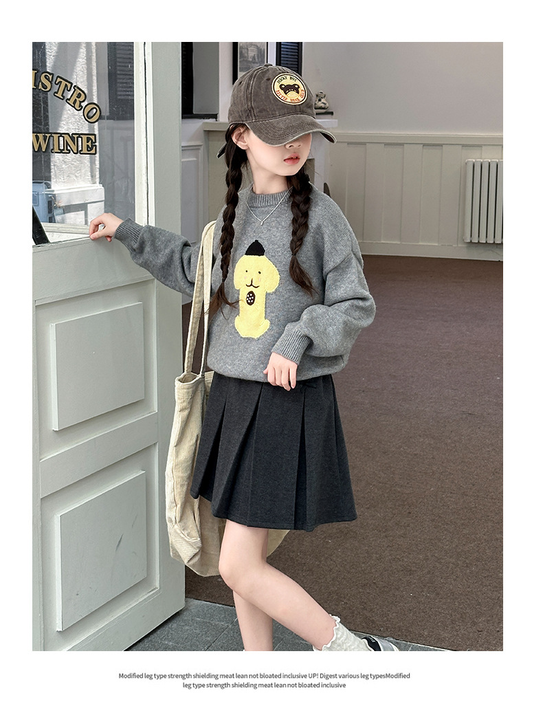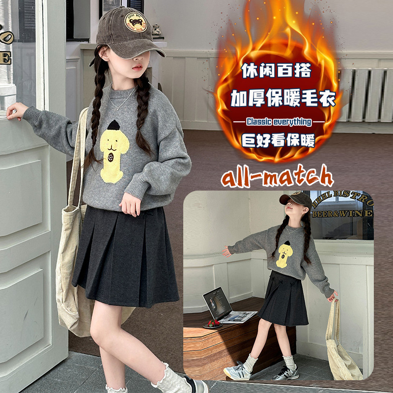 어린이 스웨터 가을과 겨울 2024 새로운 서양식 큰 아이들 따뜻한 겨울 소녀의 니트 베이스 그레이 탑스토어 가기