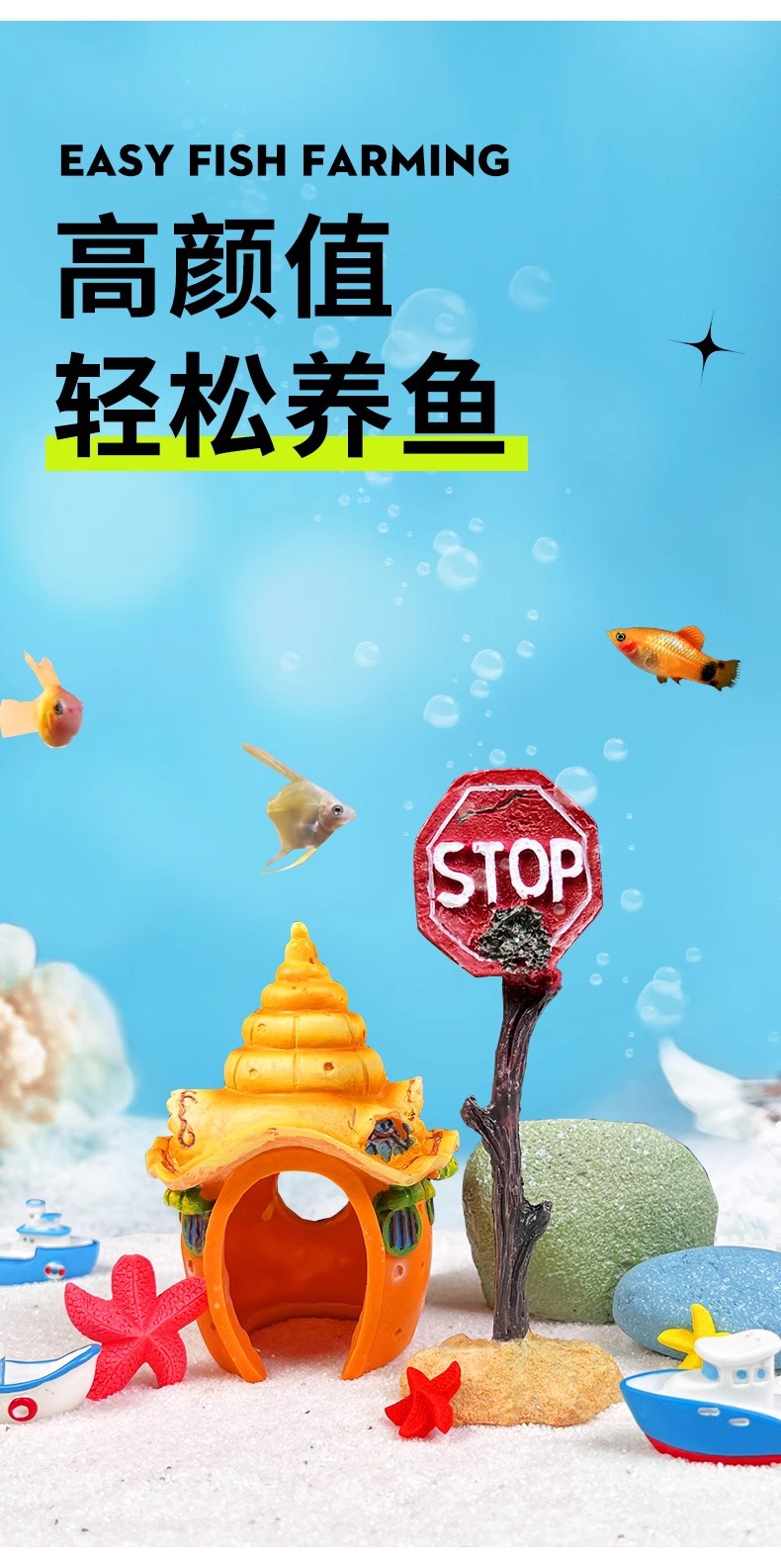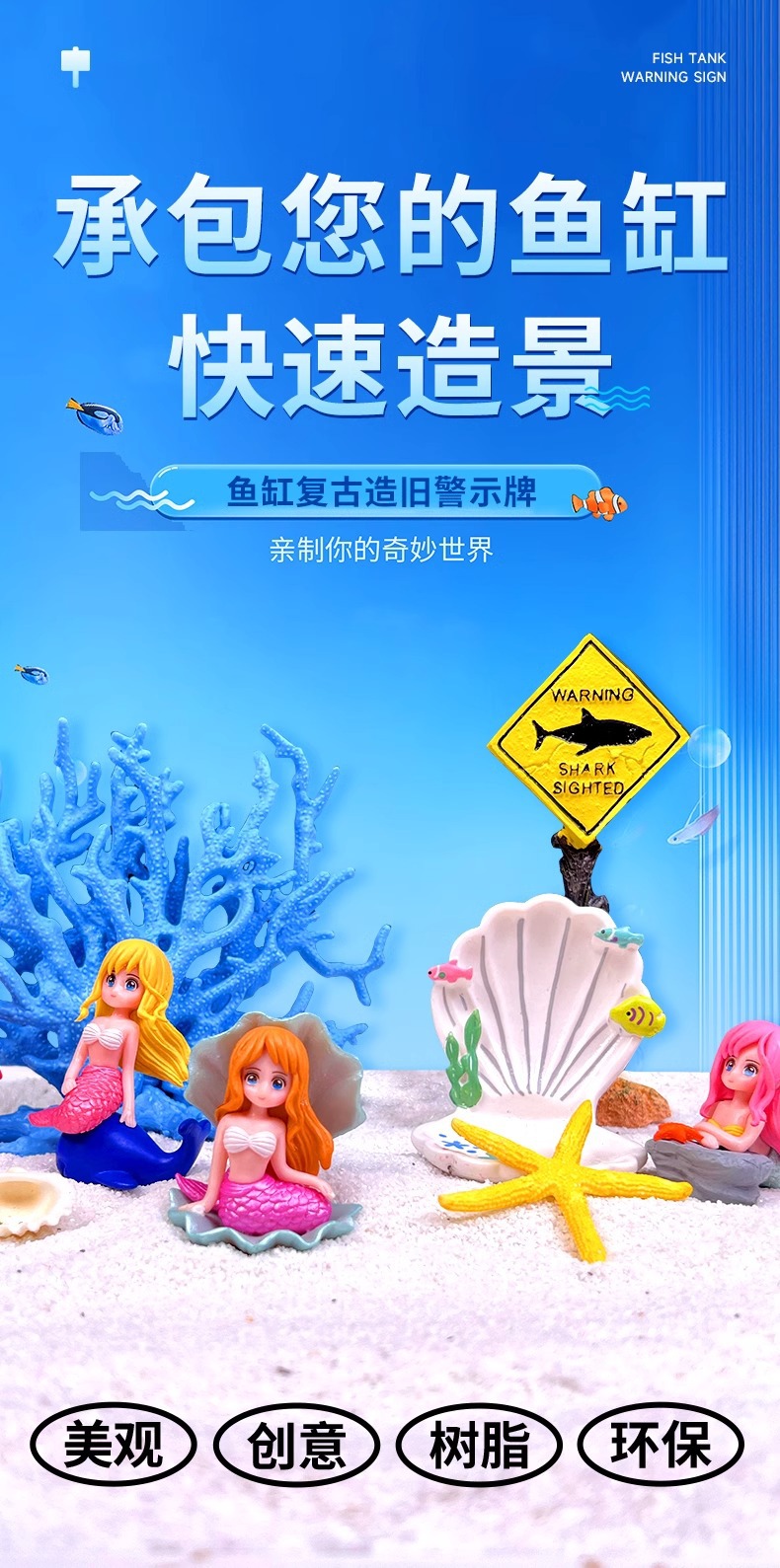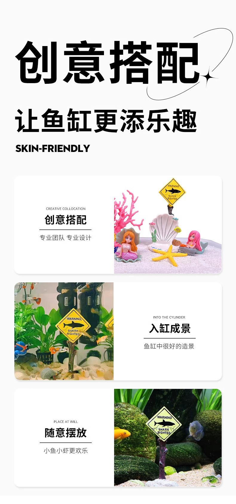 물고기 탱크 수족관 도로 표지판 수지 장식 물고기 표지판 조경 작은 장식품 시뮬레이션 상어 표지판 경고 부속품스토어 가기