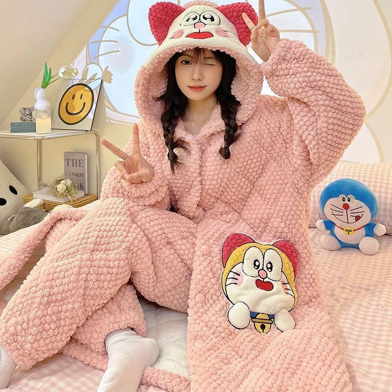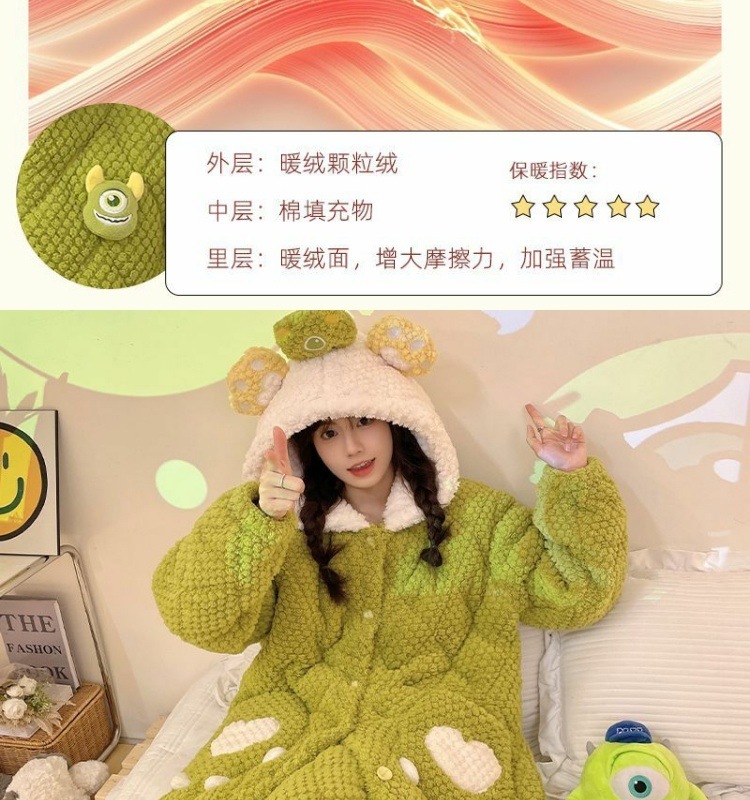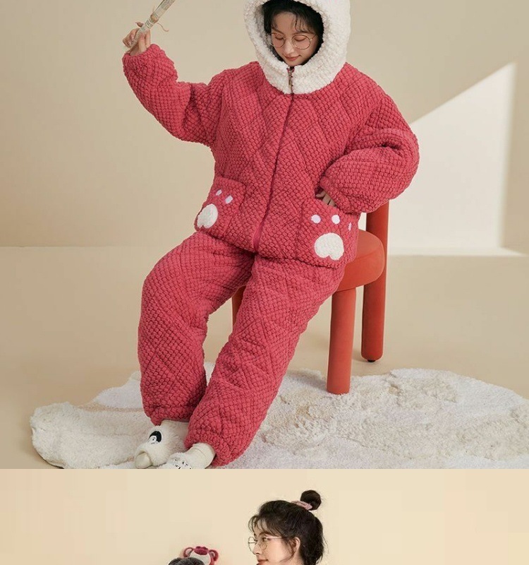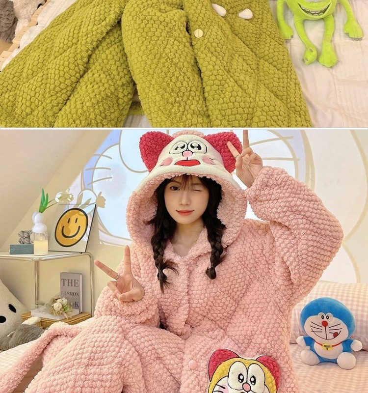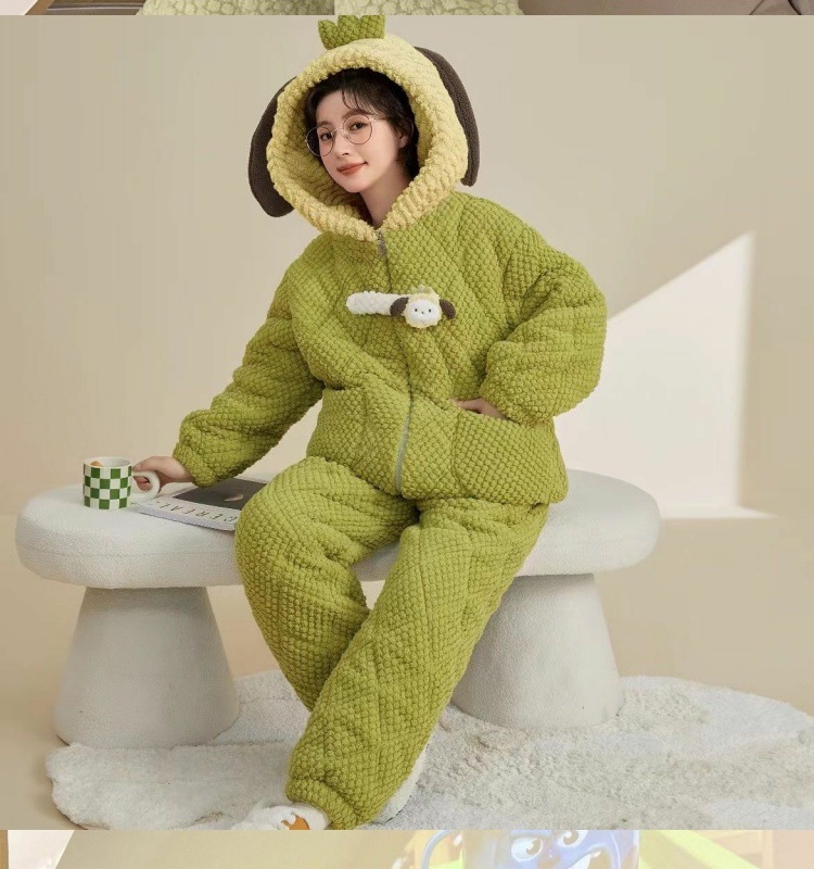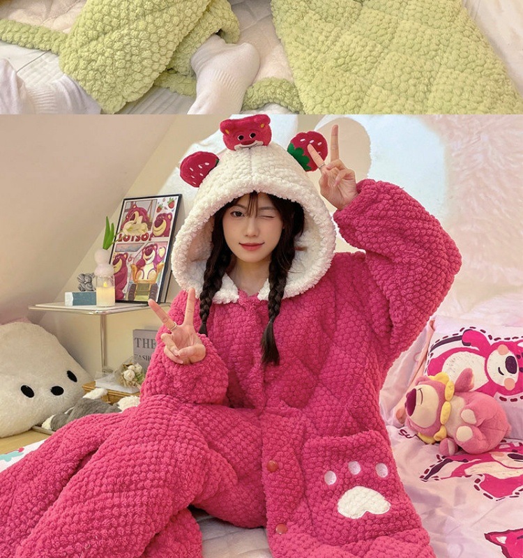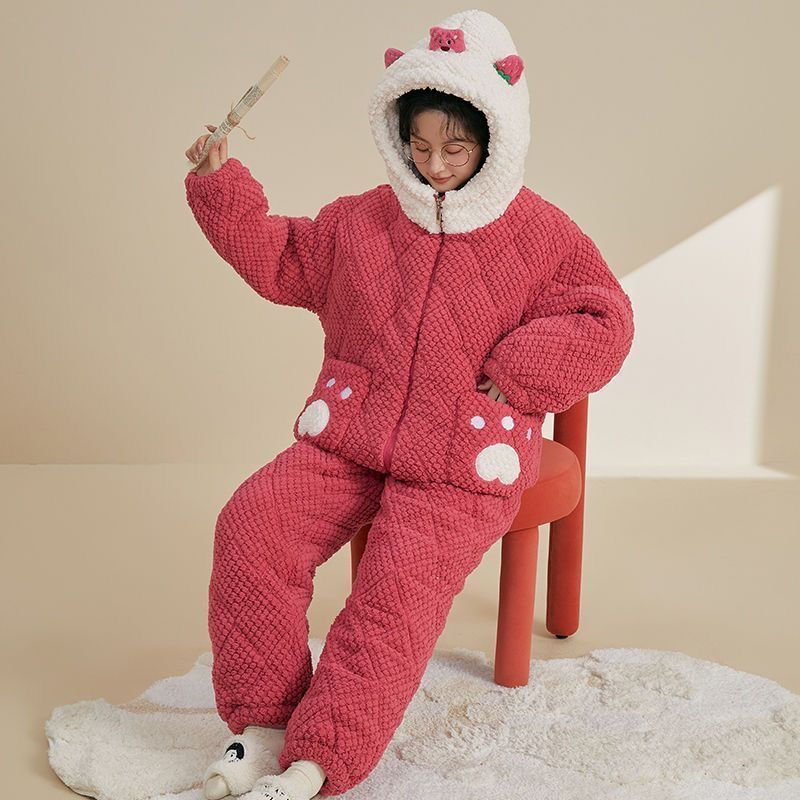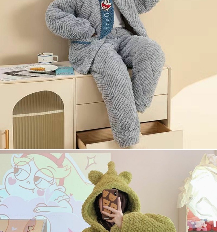 만화 3 층 퀼트 겨울 잠옷 여성의 따뜻한 세트 두꺼운 귀여운 홈 옷 산호 양털 로브 인 스타일스토어 가기