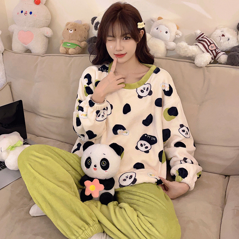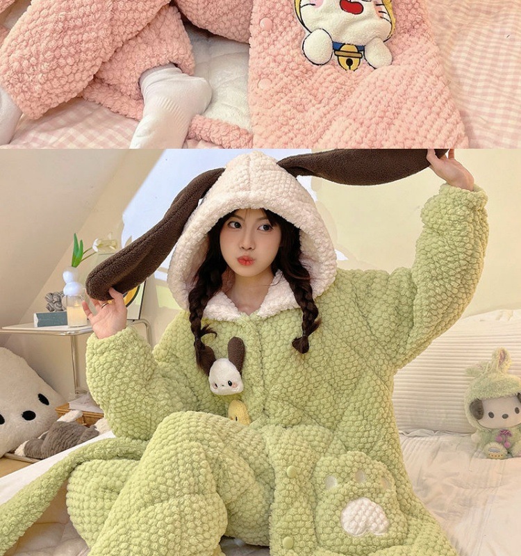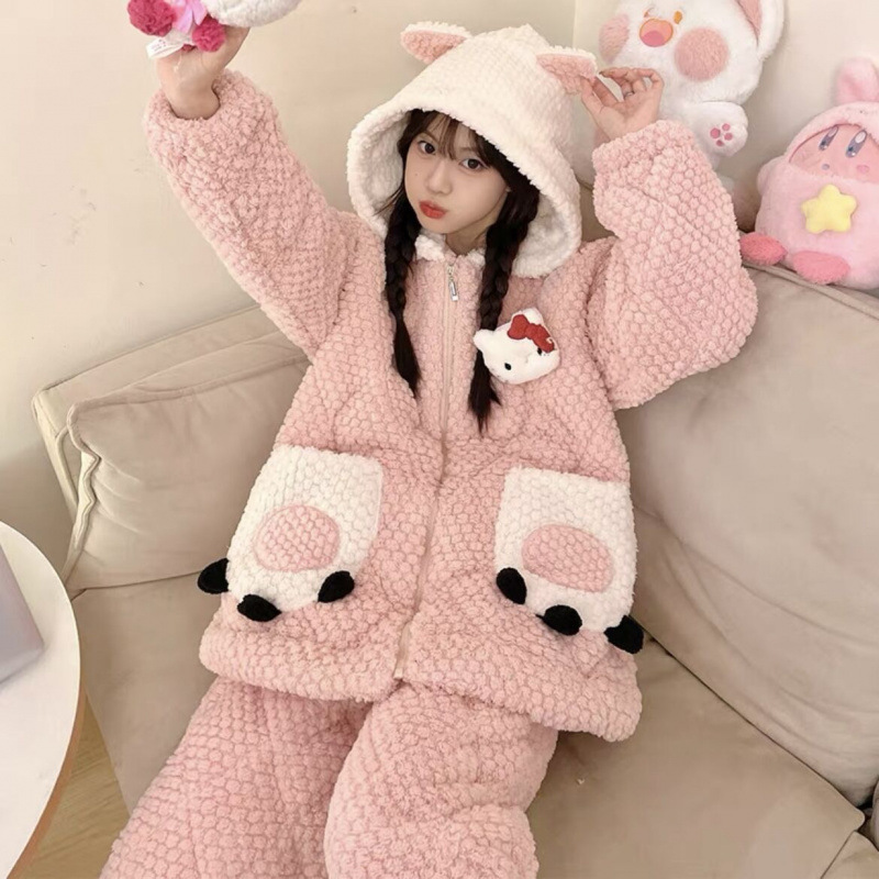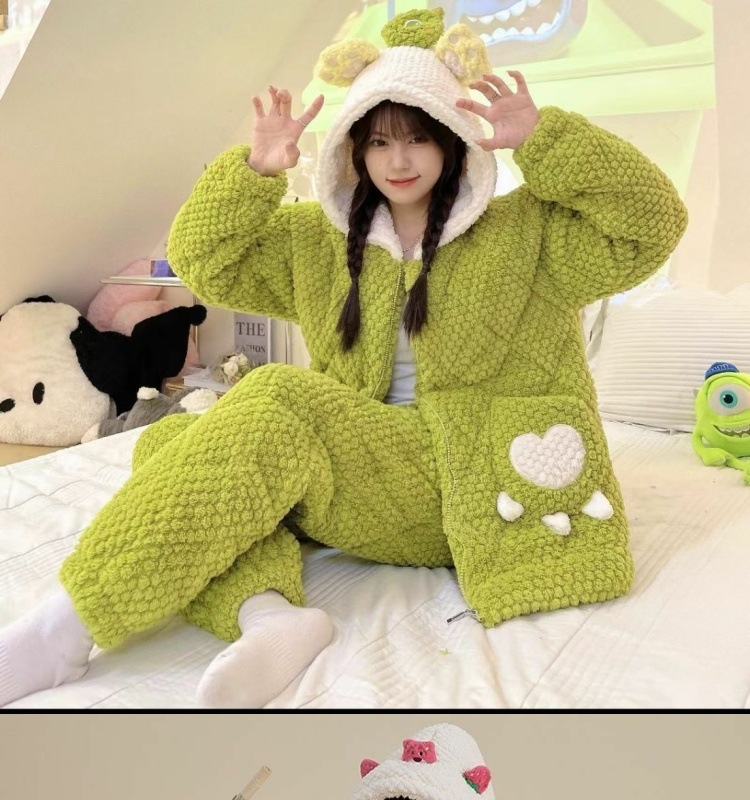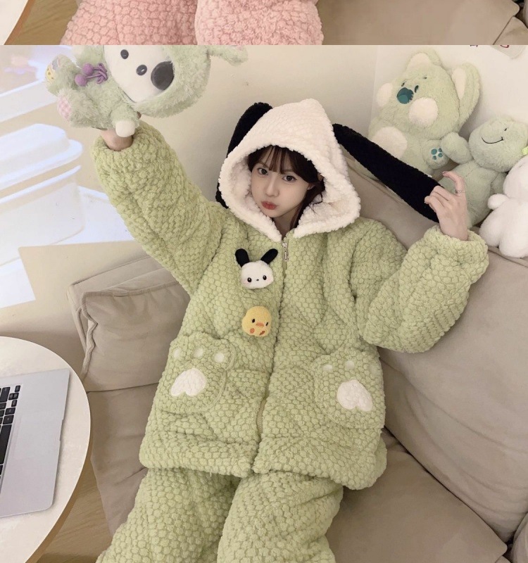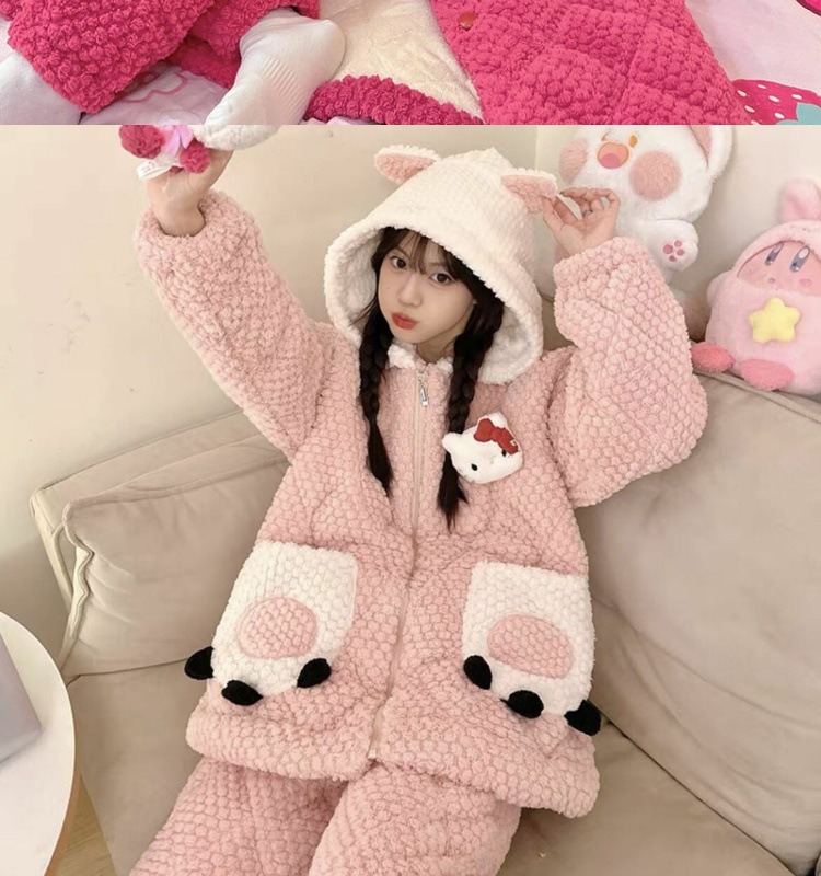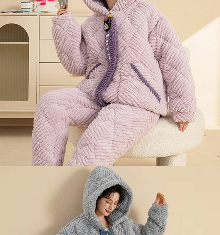 만화 3 층 퀼트 겨울 잠옷 여성의 따뜻한 세트 두꺼운 귀여운 홈 옷 산호 양털 로브 인 스타일스토어 가기