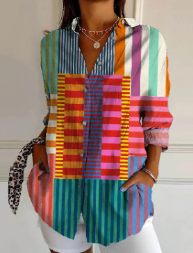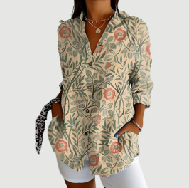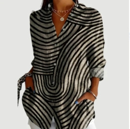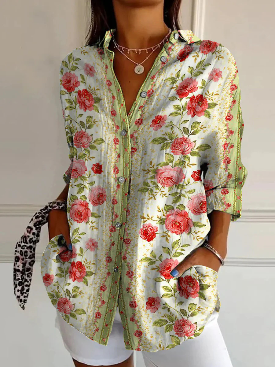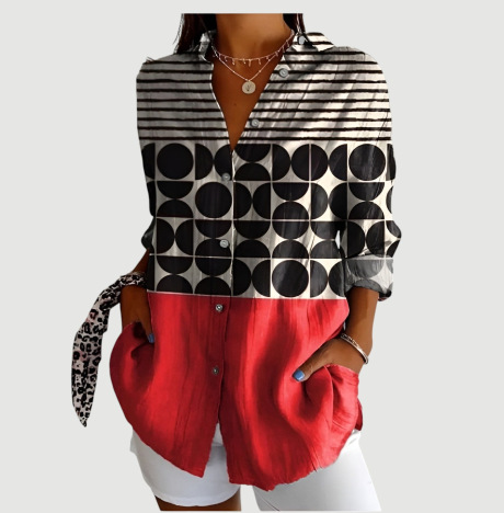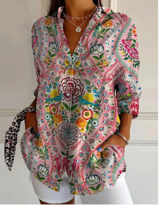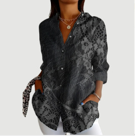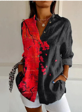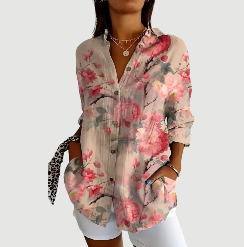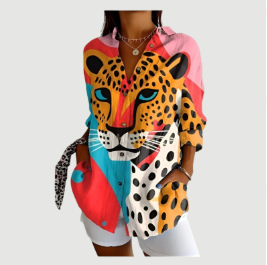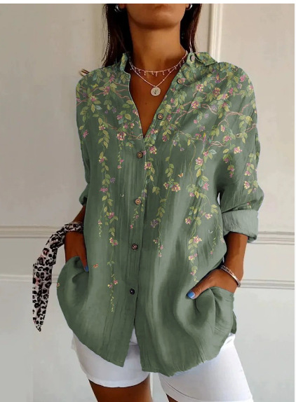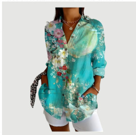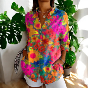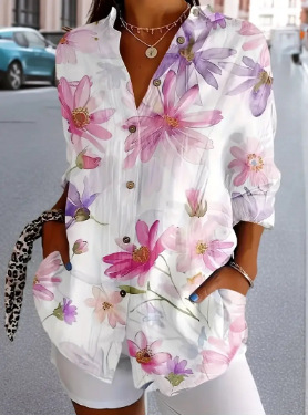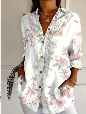 2024 새로운 여성 긴 셔츠 여름 유럽과 미국의 트렌드 반 소매 꽃 패턴 인쇄 3D 짧은 소매 패션
