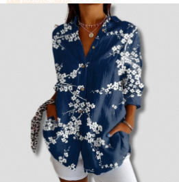 2024 새로운 여성 긴 셔츠 여름 유럽과 미국의 트렌드 반 소매 꽃 패턴 인쇄 3D 짧은 소매 패션스토어 가기