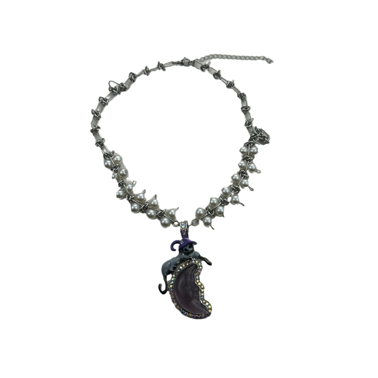 중공업 문 라인스톤 펜던트 비즈 더블 레이어 진주 목걸이 달콤한 쿨 스파이스 소녀 성격 패션 콜라본 체인 액세서리 트렌디스토어 가기